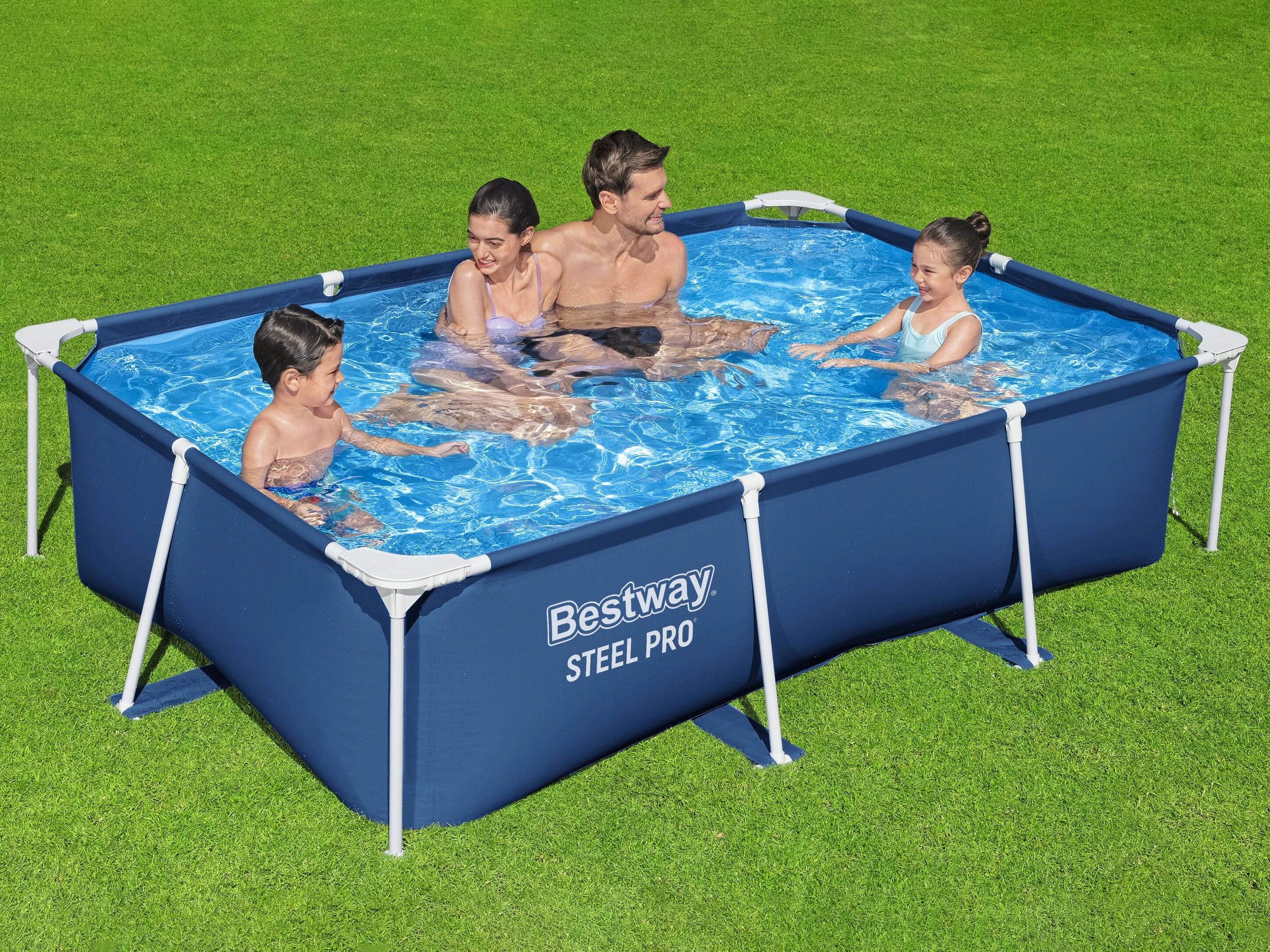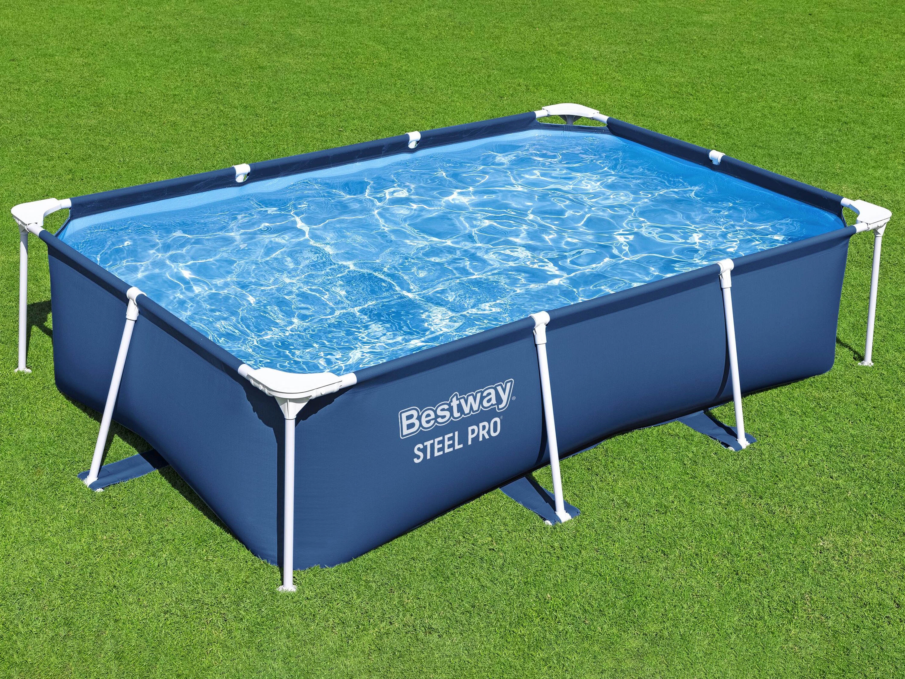 Dieser Pool bietet Badespass und Abkühlung für Kinder an heissen Sommertagen. Das rechteckige Becken mit korrosionsbeständigem Stahlrahmen und robuster DuraPlus-Poolfolie ist schnell und einfach aufgebaut. Du hast die Möglichkeit, den Pool mit einer Filterpumpe auszustatten, damit das Wasser stets sauber bleibt. Geniesse den Sommer im eigenen Garten und plansche mit den Kindern in diesem robusten Pool von Bestway!