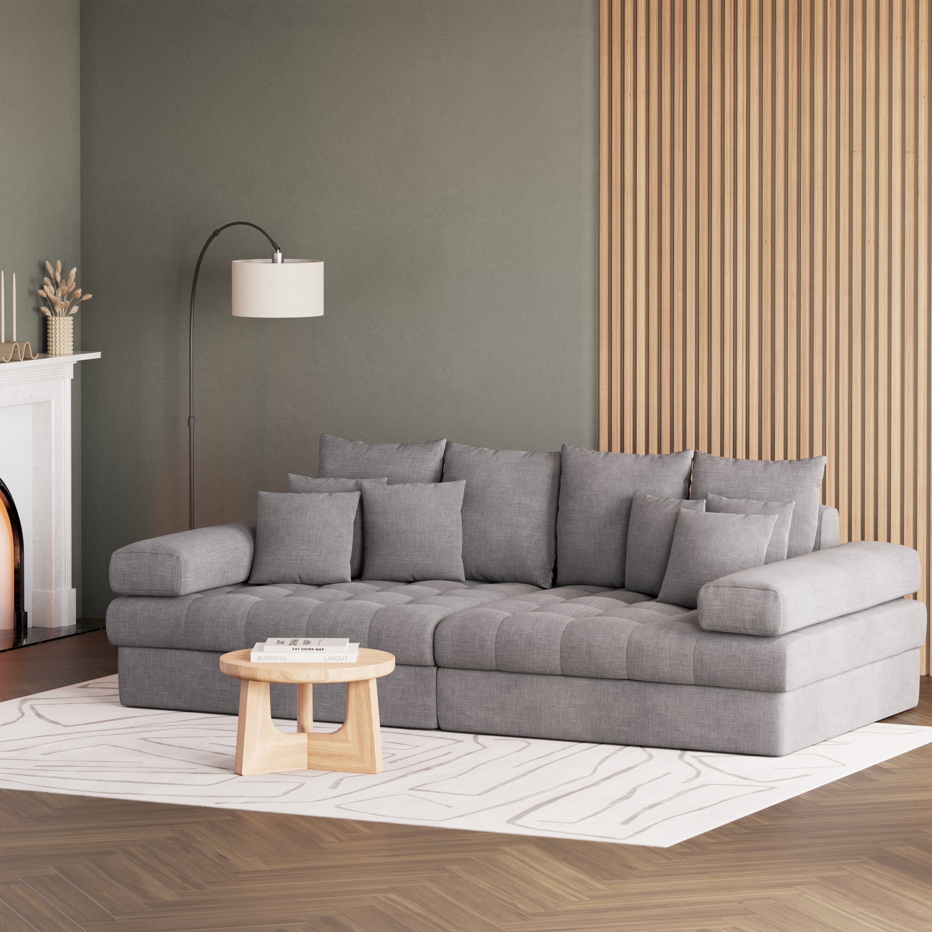 - Including decorative cushions in various sizes