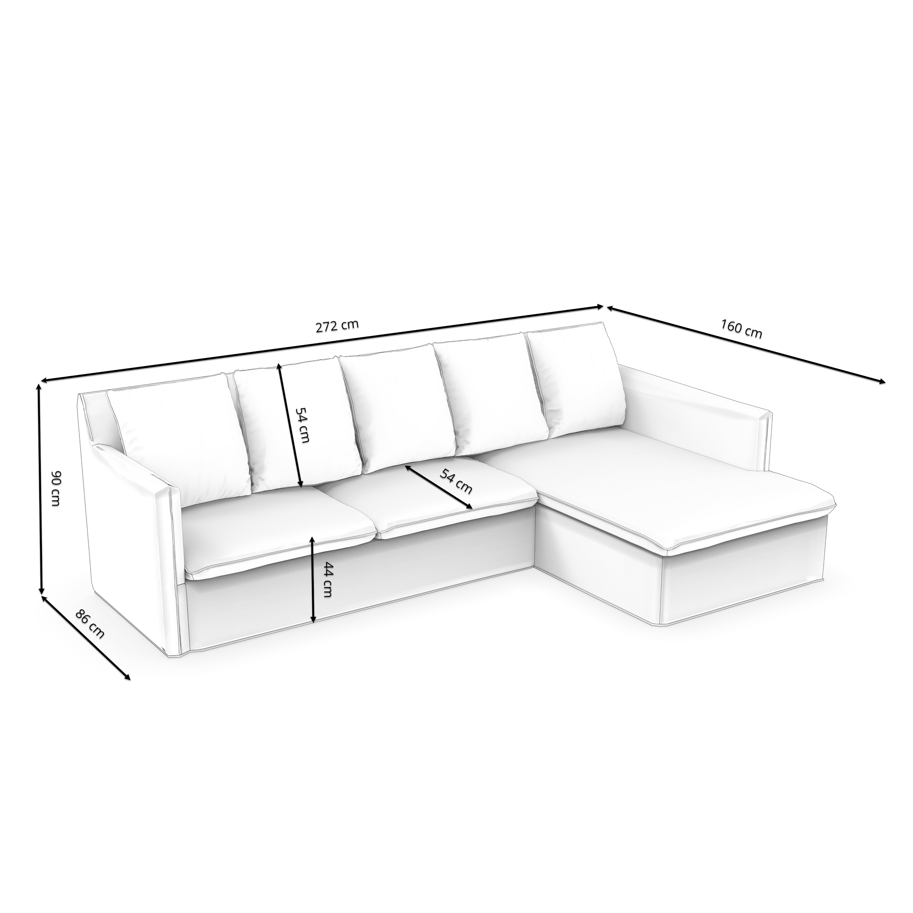 - Total dimensions: 272 x 160 x 90 cm (W x D x H)