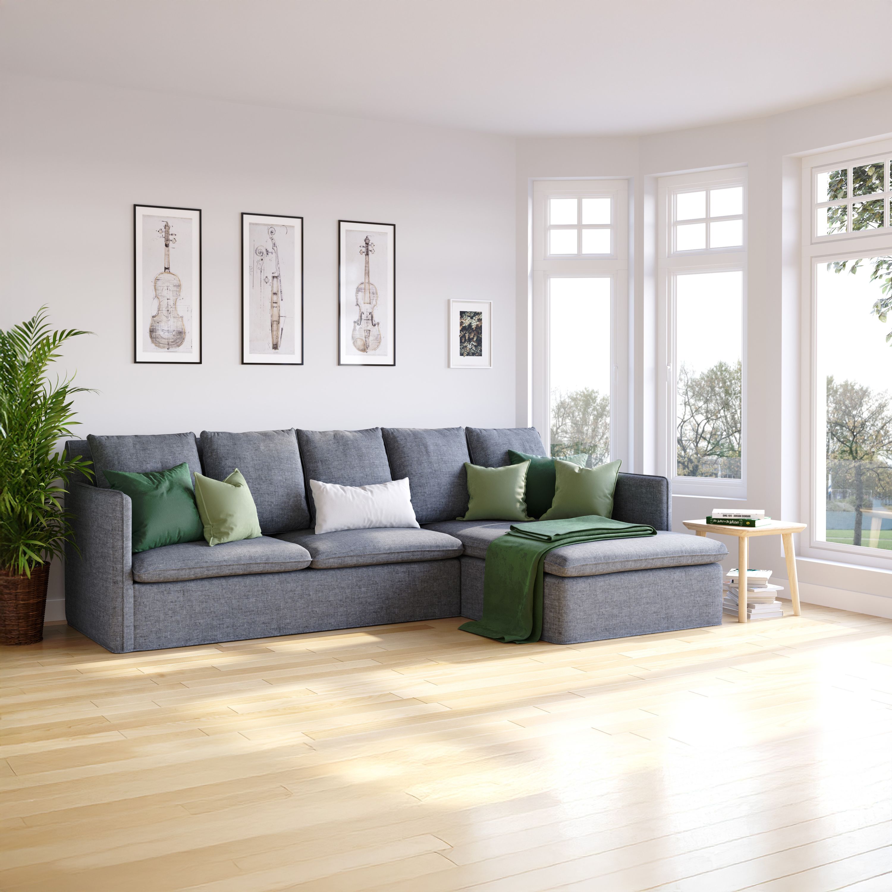 This corner sofa combines style and comfort in an extraordinary way. You can lean back and relax on the spacious seating and reclining area and unwind with a good book, great music or your favourite series. The softly padded back cushions ensure maximum comfort. Thanks to its modern curved shapes, the sofa is a real eye-catcher and goes wonderfully with your existing furniture. Take a short break from everyday life and enjoy the evening to the full with this DINA corner sofa!