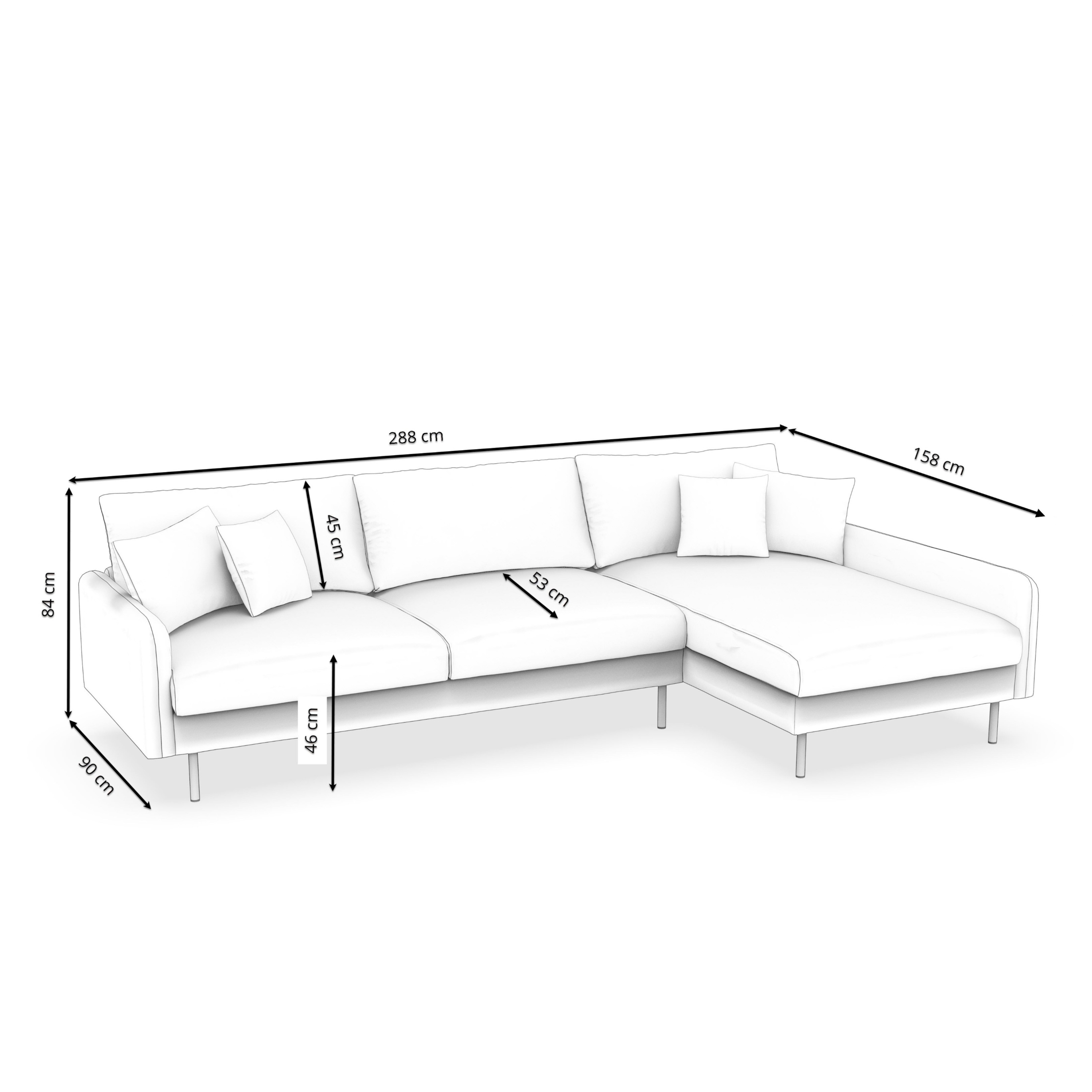 - Total dimensions: 288 x 158 x 84 cm (W x D x H)