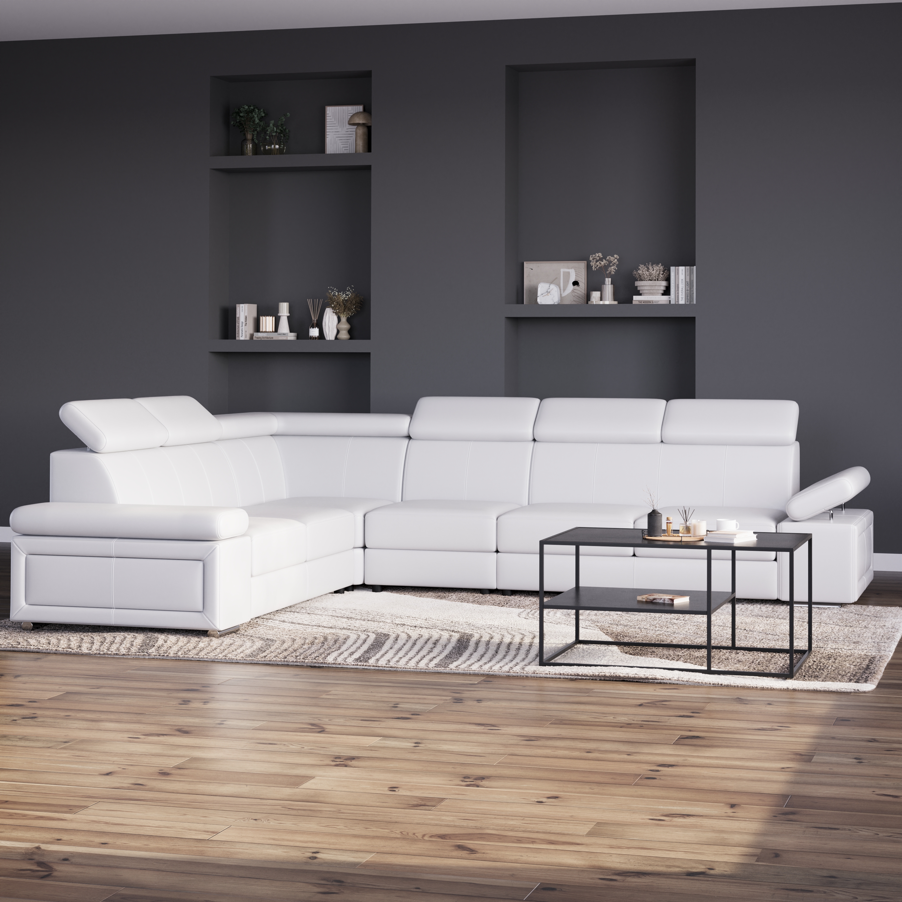 When modern elegance and maximum comfort meet: the CRISTIANO corner sofa. This elegant sofa shines with its aesthetic faux leather upholstery and discreet silver-coloured sofa feet. 5 to 6 people can easily be accommodated on the spacious seating and reclining areas. The adjustable headrests and the reclining area give this unique sofa that certain something. Furnish your home in a particularly design-savvy way with this corner sofa!
