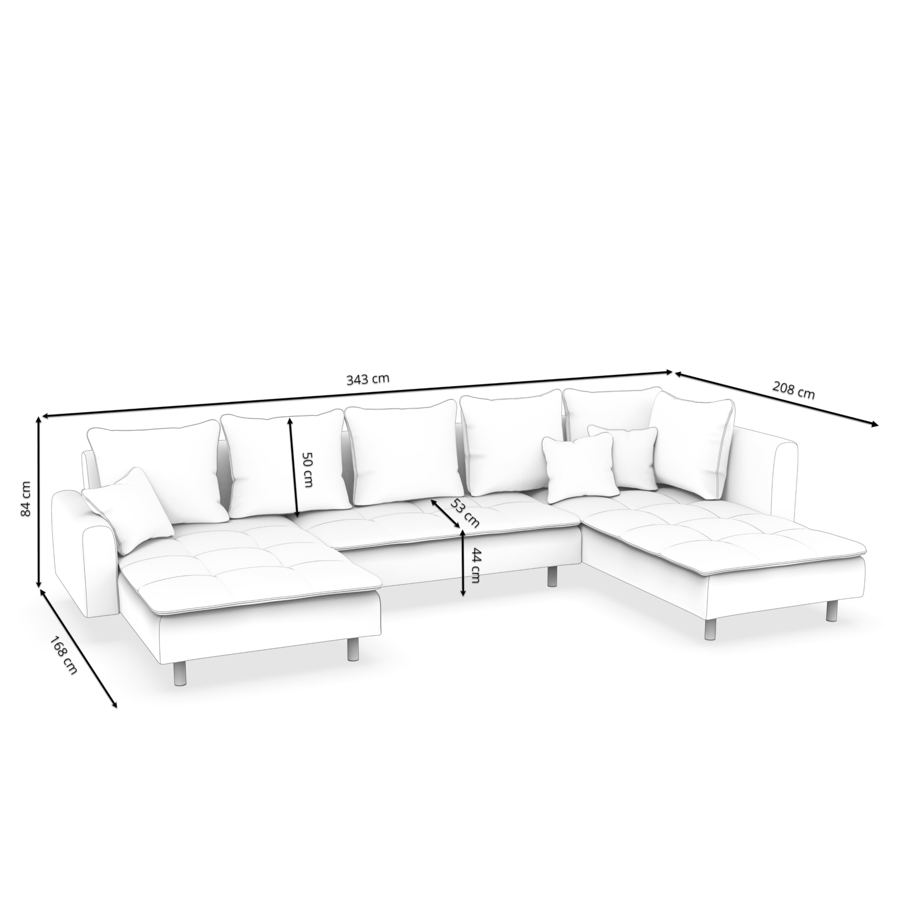 - Dimensions sofa: 343 x 168 / 208 x 84 cm (W x D x H)