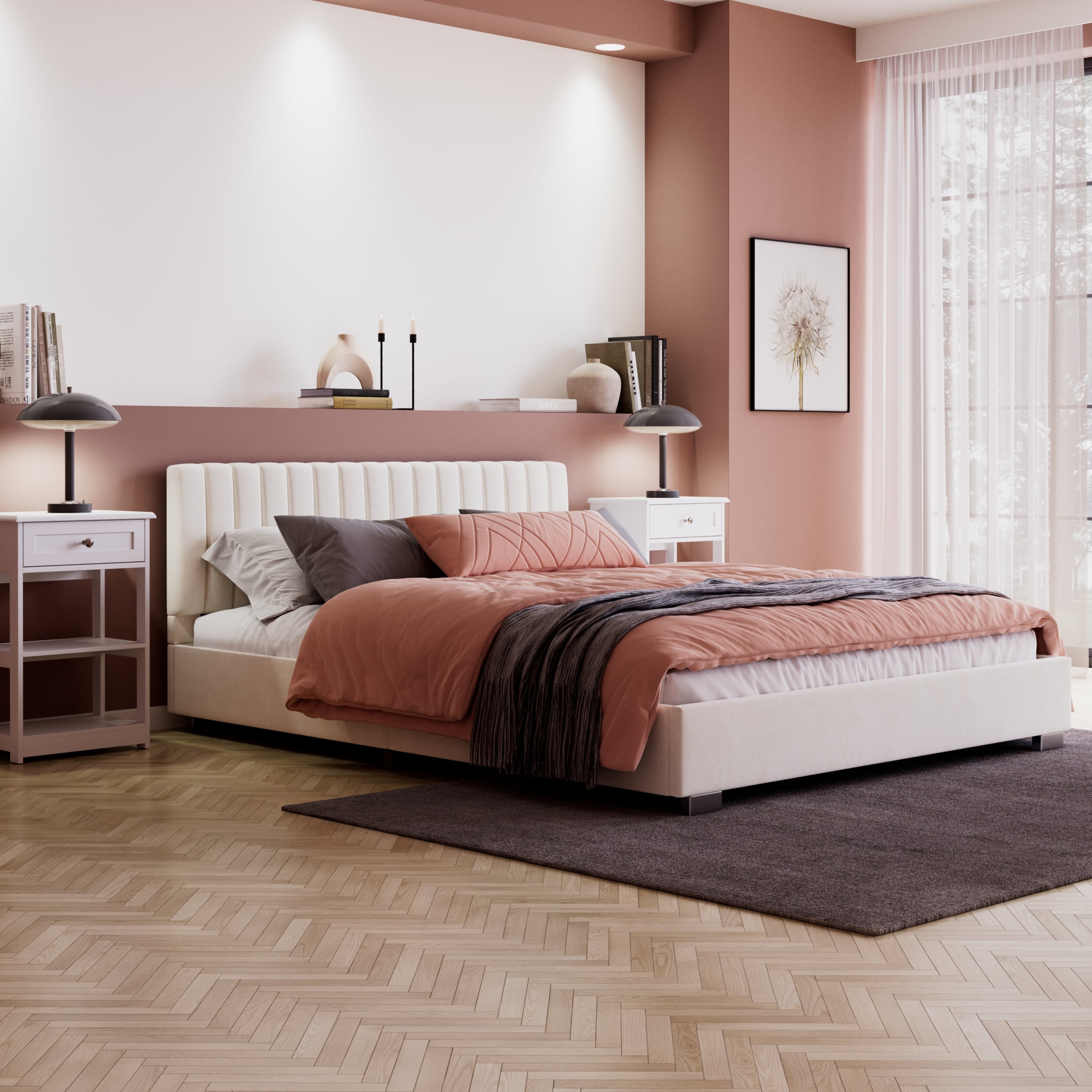 - Headboard for comfortable reclining and morning coffee in bed