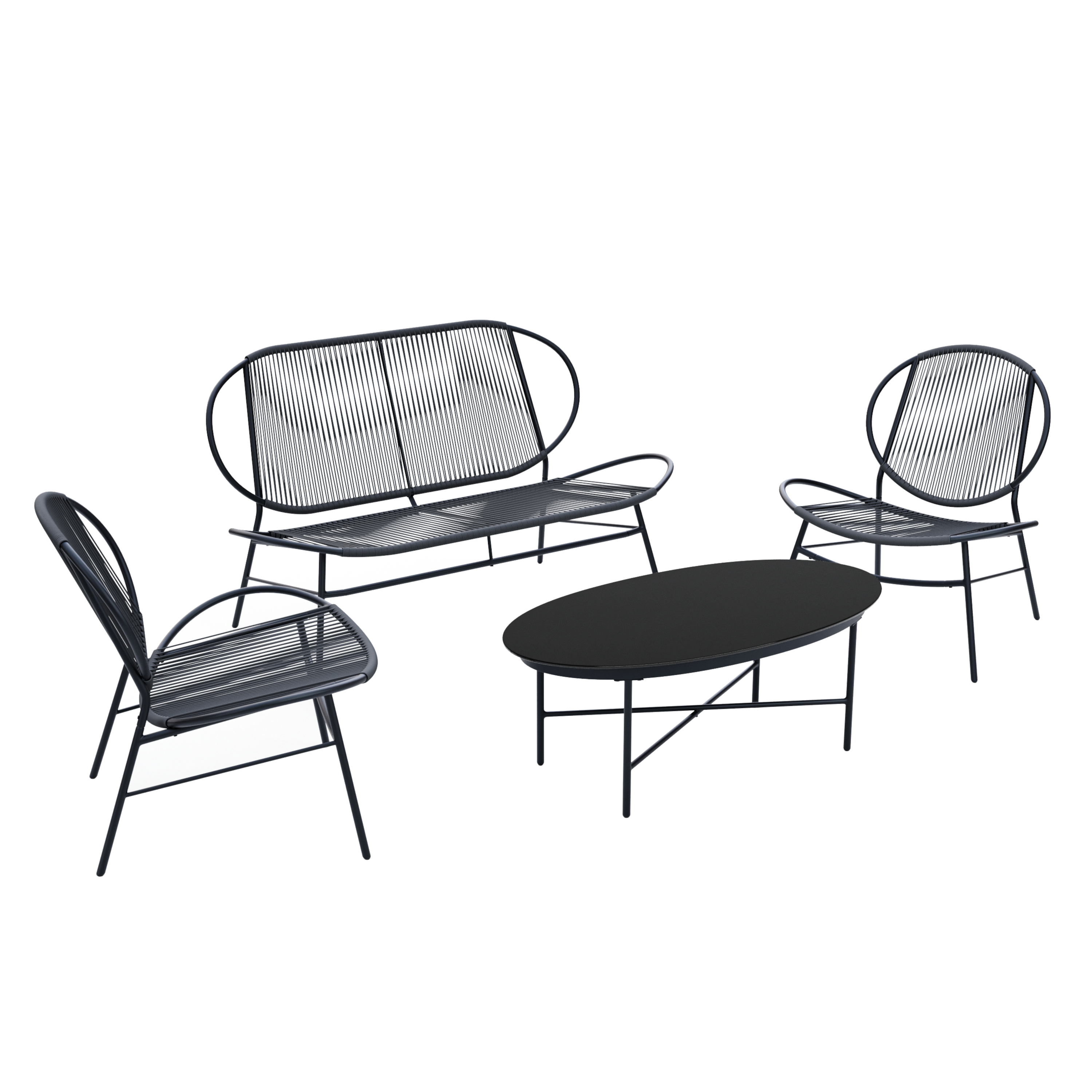 Whether relaxed Sunday brunch or joyful after-work drinks: On the LOMBOK lounge you enjoy moments together! A 2-seater and two armchairs are comfortable seats thanks to the unique plastic covering. Thanks to the large side table, you can enjoy an aperitif or breakfast. The furniture is made of steel and is ideal for outdoor use. Upgrade your garden with this modern lounge!