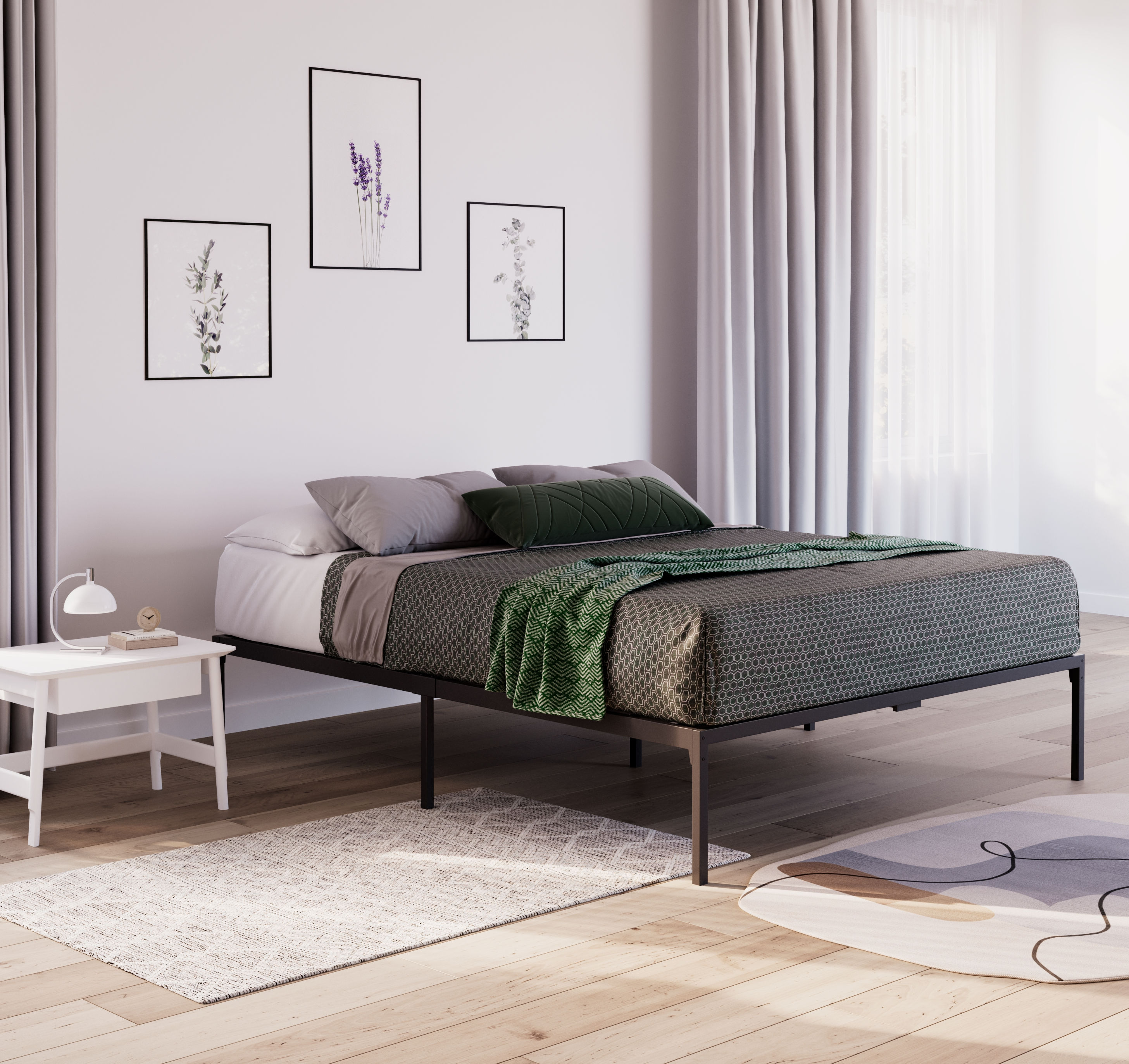 This bed provides a classic look in your bedroom. The black metal frame is fitted with a comfortable slatted base. The generous storage space under the bed frame is a special bonus, allowing you to store boxes and suitcases in a space-saving manner. Furnish your bedroom or guest room to your taste with the SERENA 160 x 200 cm metal bed!