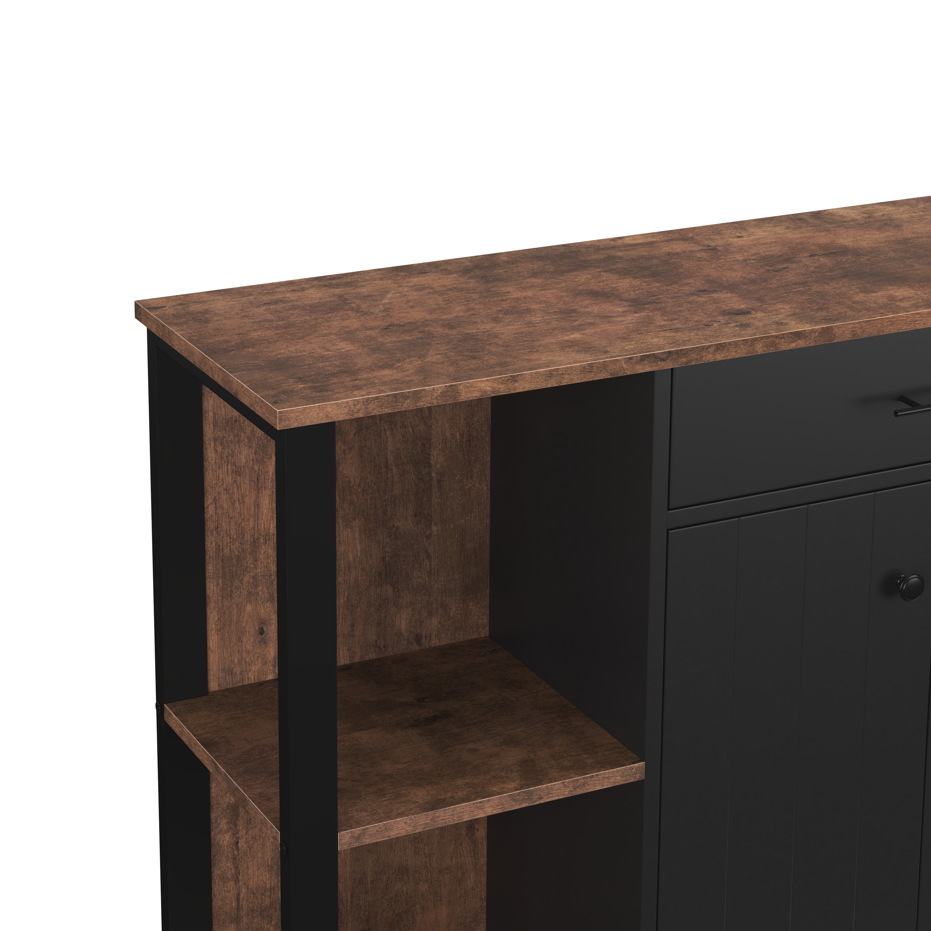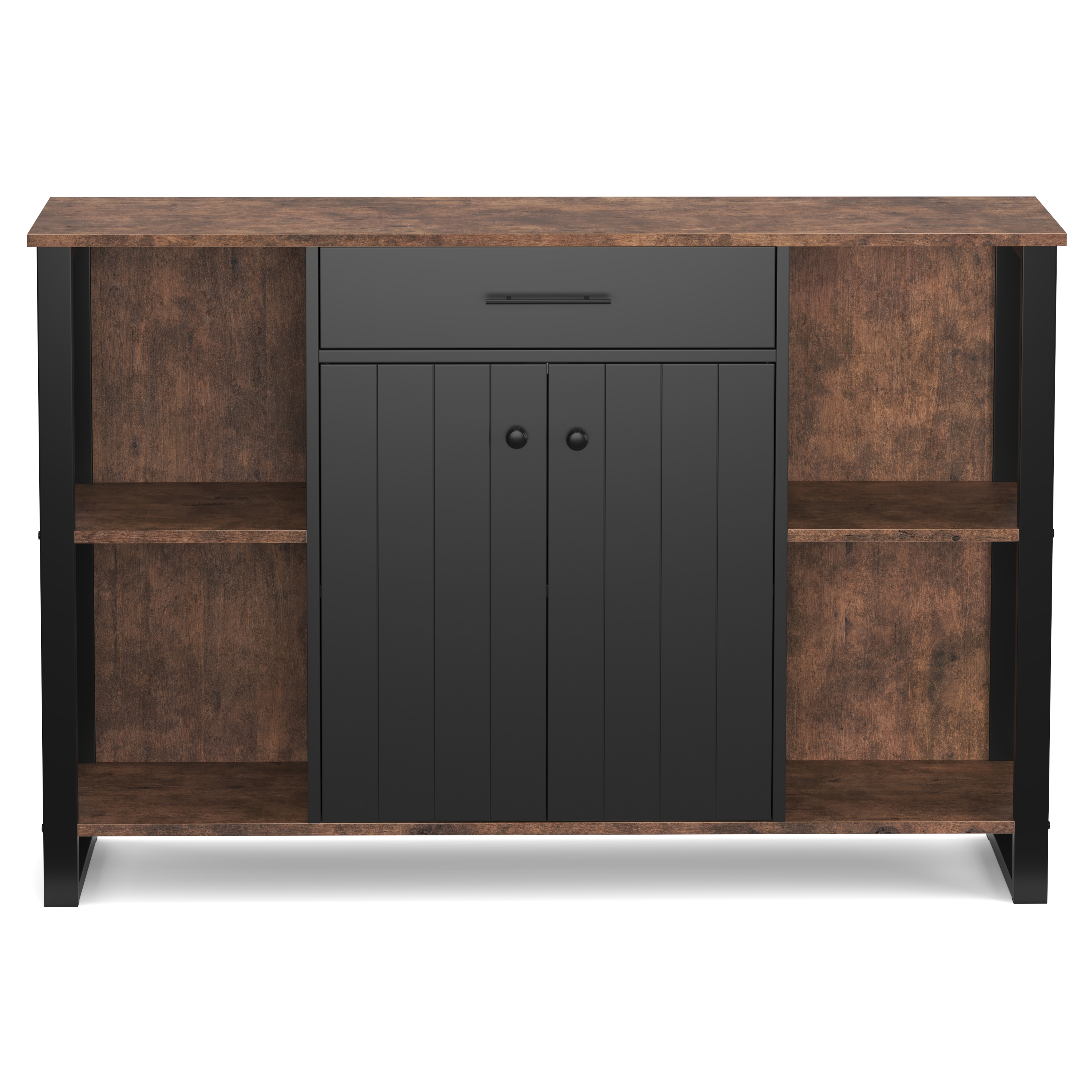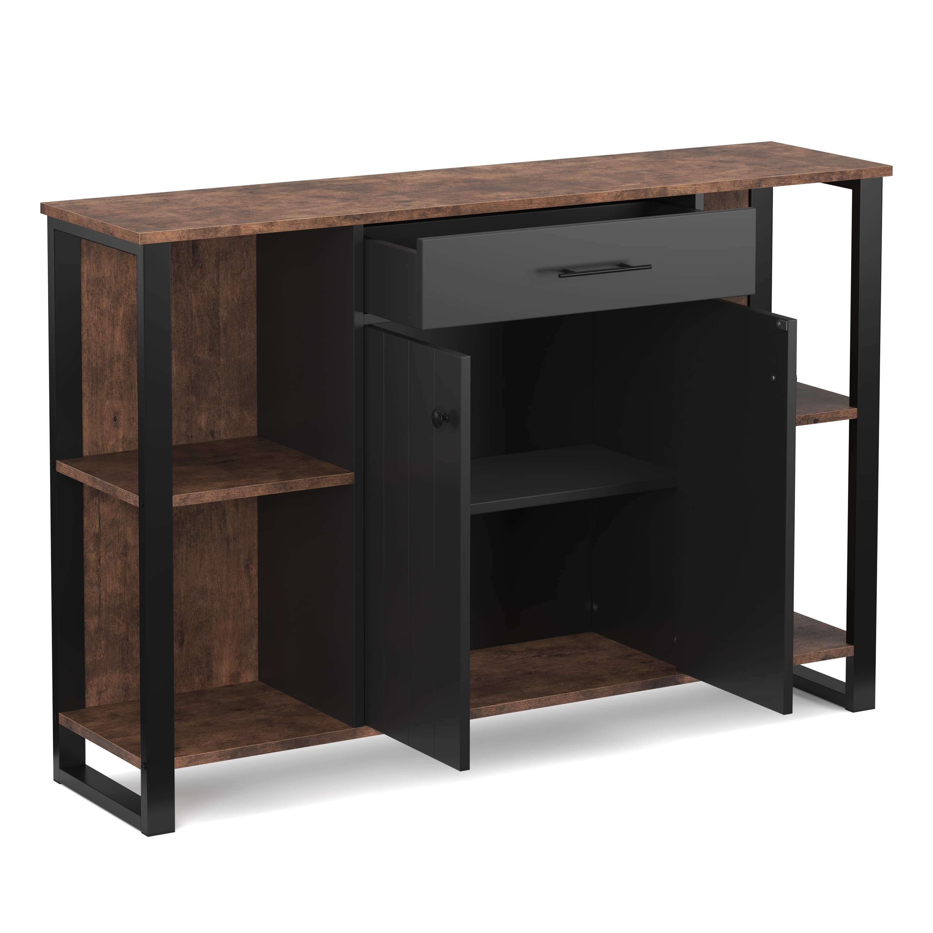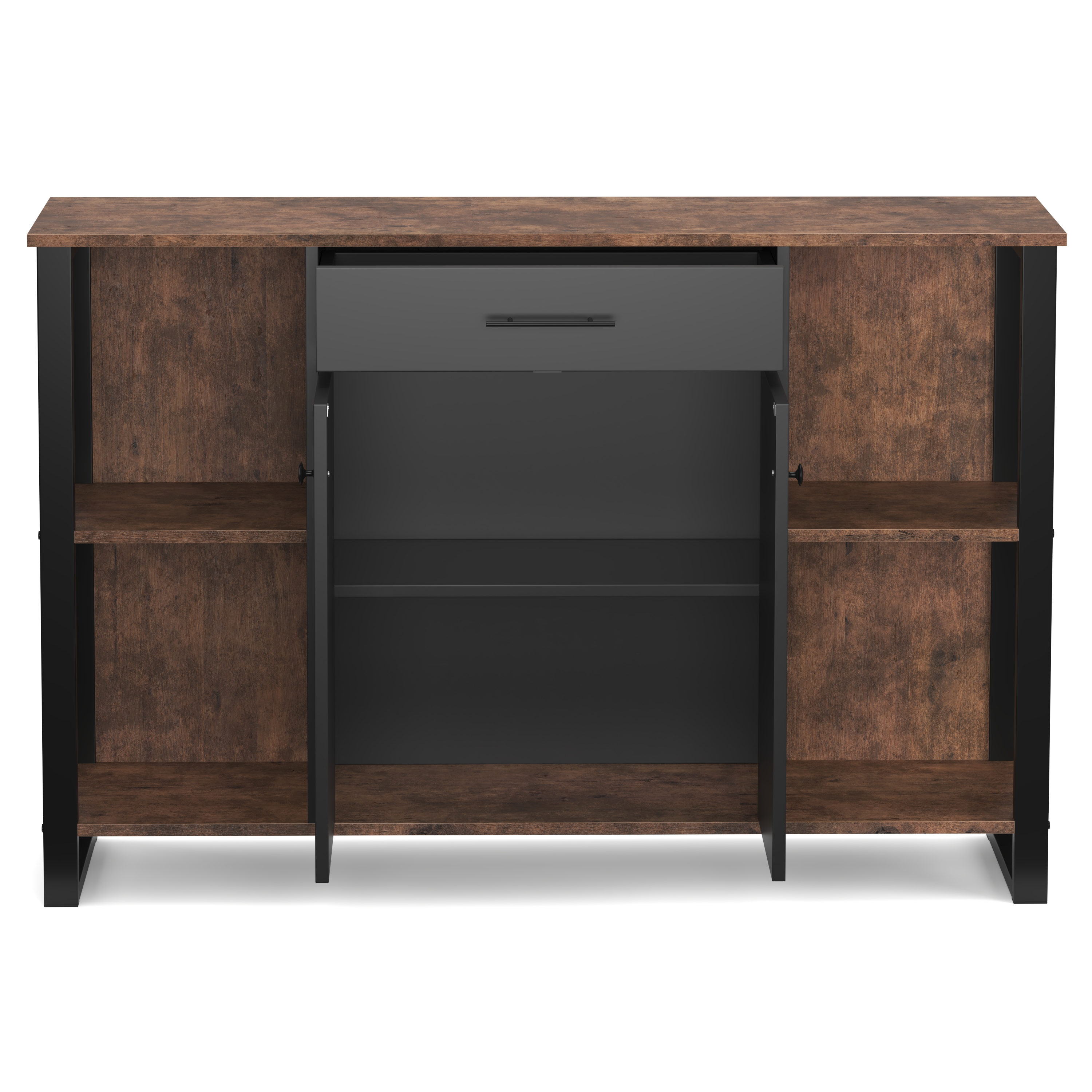 A sideboard that shines everywhere! Whether in the kitchen, dining room or entrance area - this sideboard in a charming vintage design offers you a variety of uses. With a practical drawer, cupboard and open shelves, you have space for crockery, books, decorations and more. The robust metal frame and warm wood look create a perfect blend of style and stability. Ready to organise your home and make a statement?