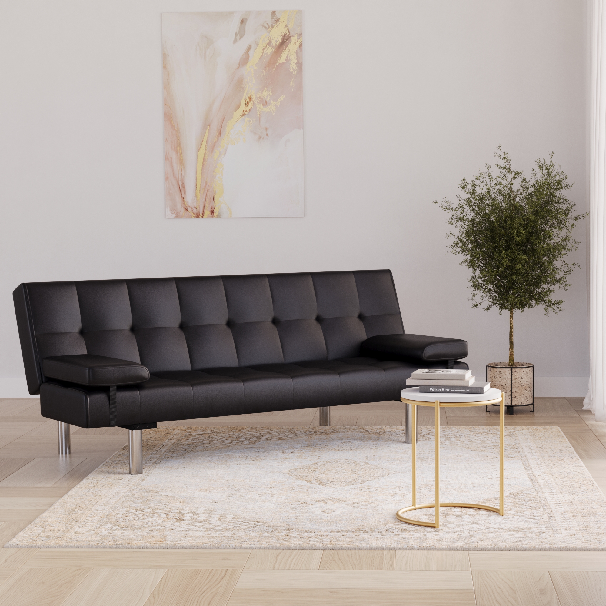 Sofa bed LENNY imitation leather black