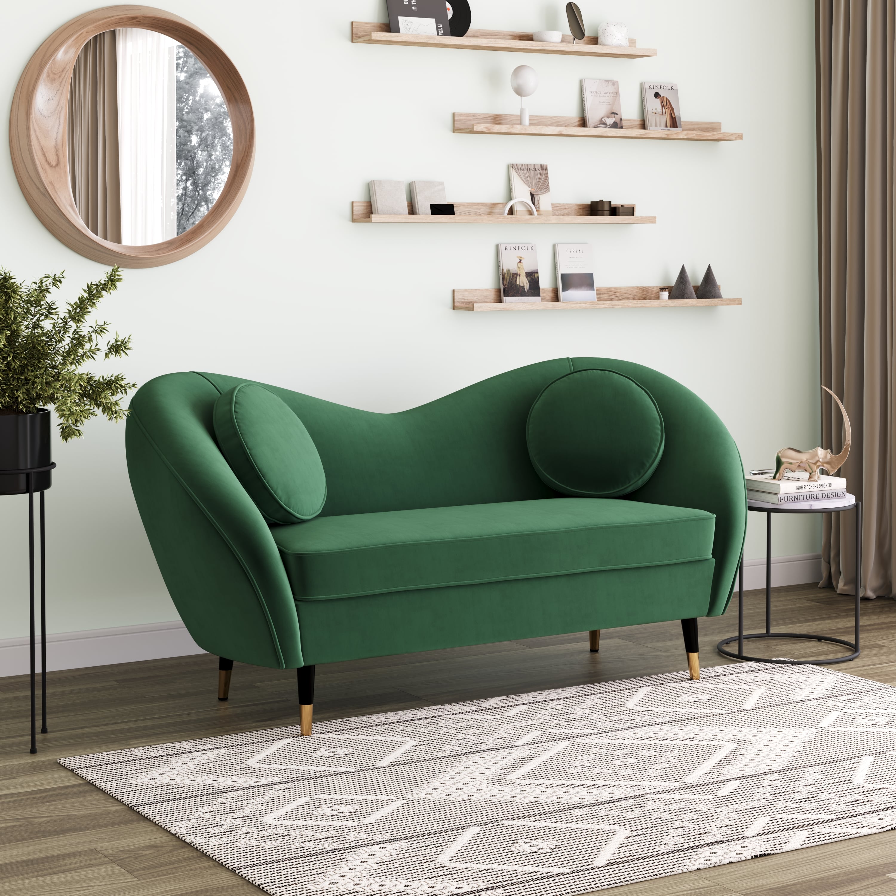 This couch is not just for nymphs! It combines classic curved shapes with a modern look. The chic green of the velvet fabric harmonises wonderfully with the gold-coloured sofa legs and cuts a fine figure in almost any living room. The matching sofa cushions provide that certain something with their round design. The generous seat offers space for you and your Apollo. Enjoy a good film or an exciting book on this DAPHNE sofa in green!