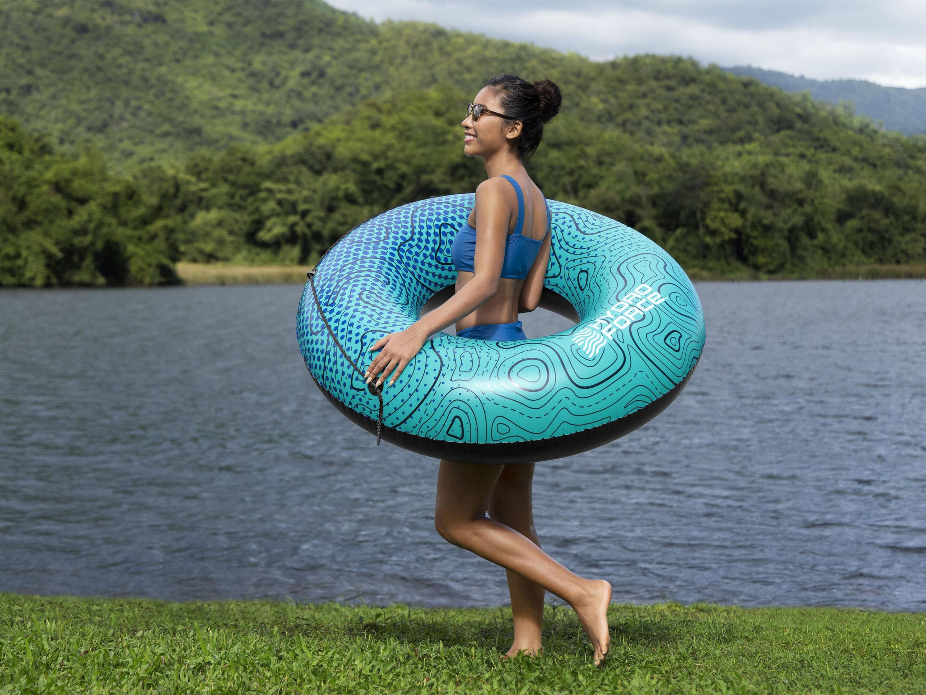 - Floating ring in blue and turquoise water design