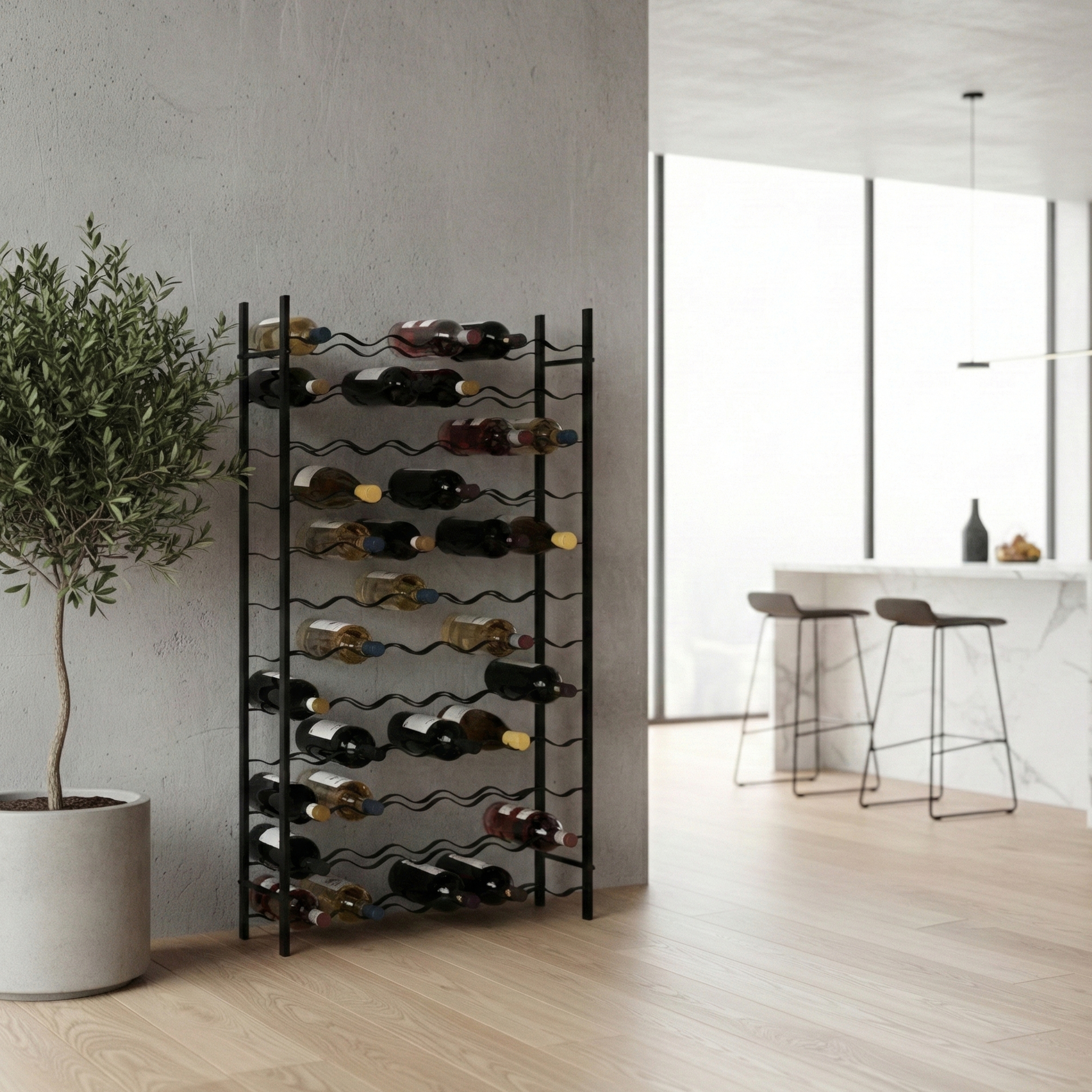 A wine rack is a must-have for all wine collectors and wine lovers. On this solid iron rack in playful factory style you can store and present all your favourites. Use the exquisite rack as a special decorative element in your living room or restaurant. Treat yourself to this wine rack for 72 exquisite bottles now!