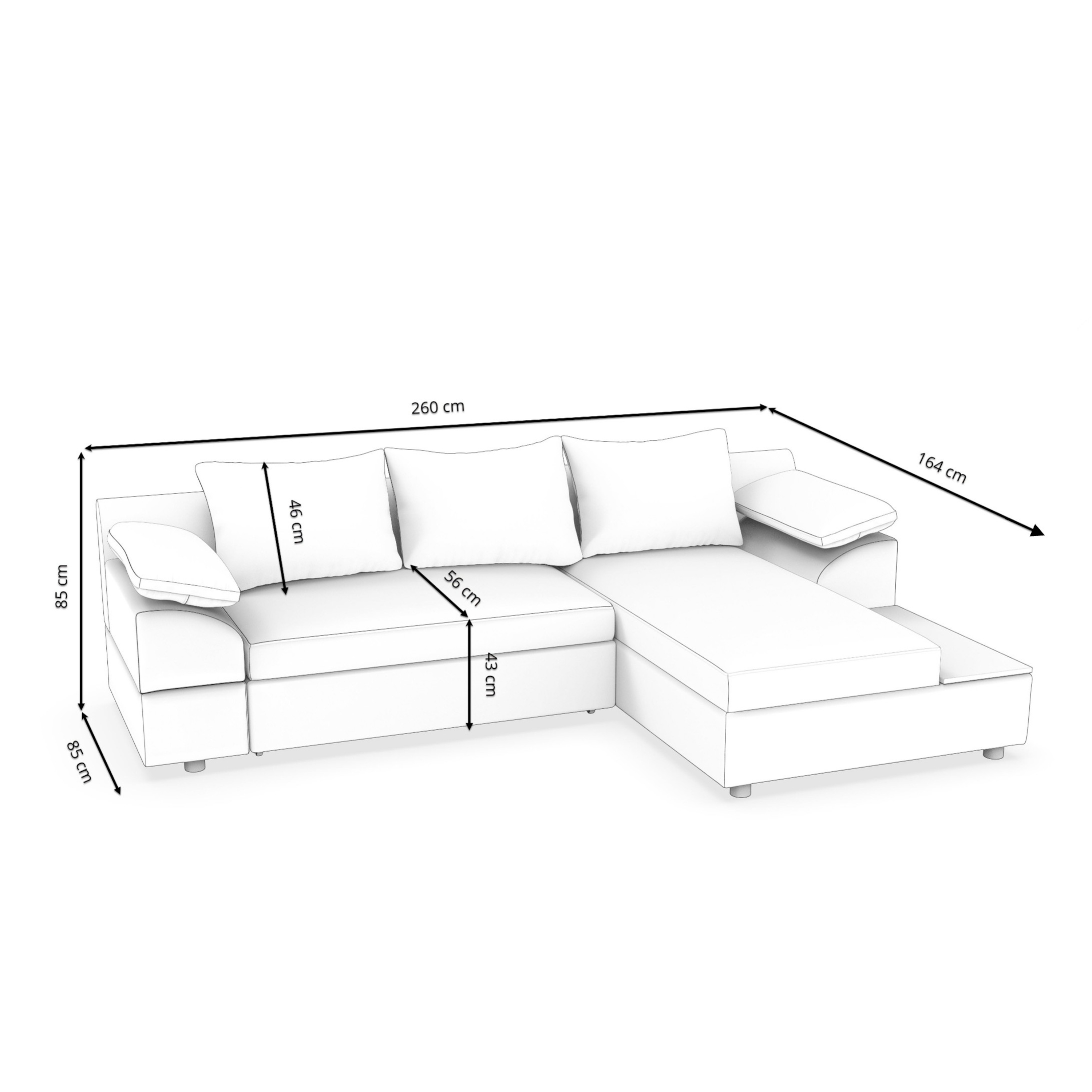 - Dimensions du canapé: environ 260 x 164 x 85 cm (L x P x H)
