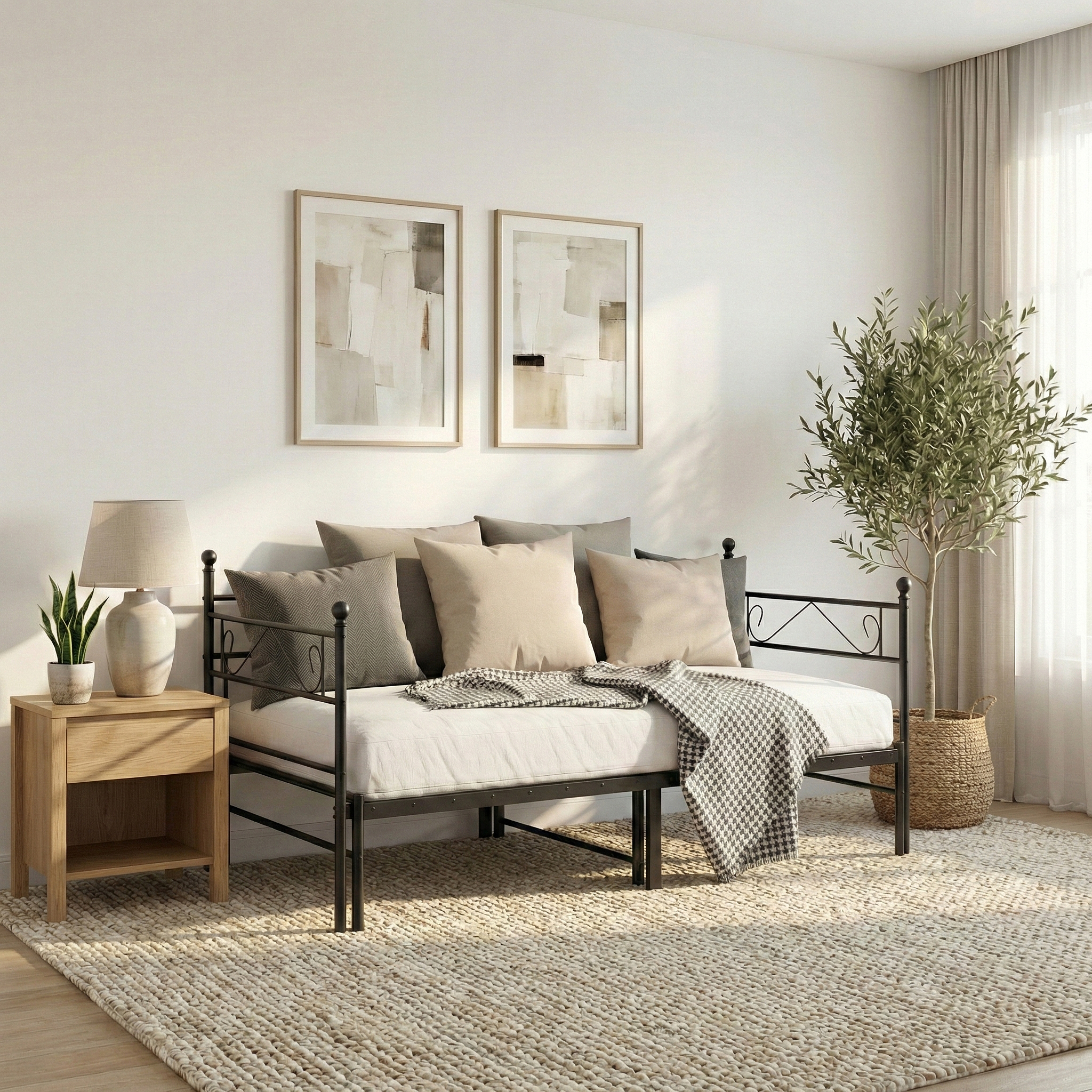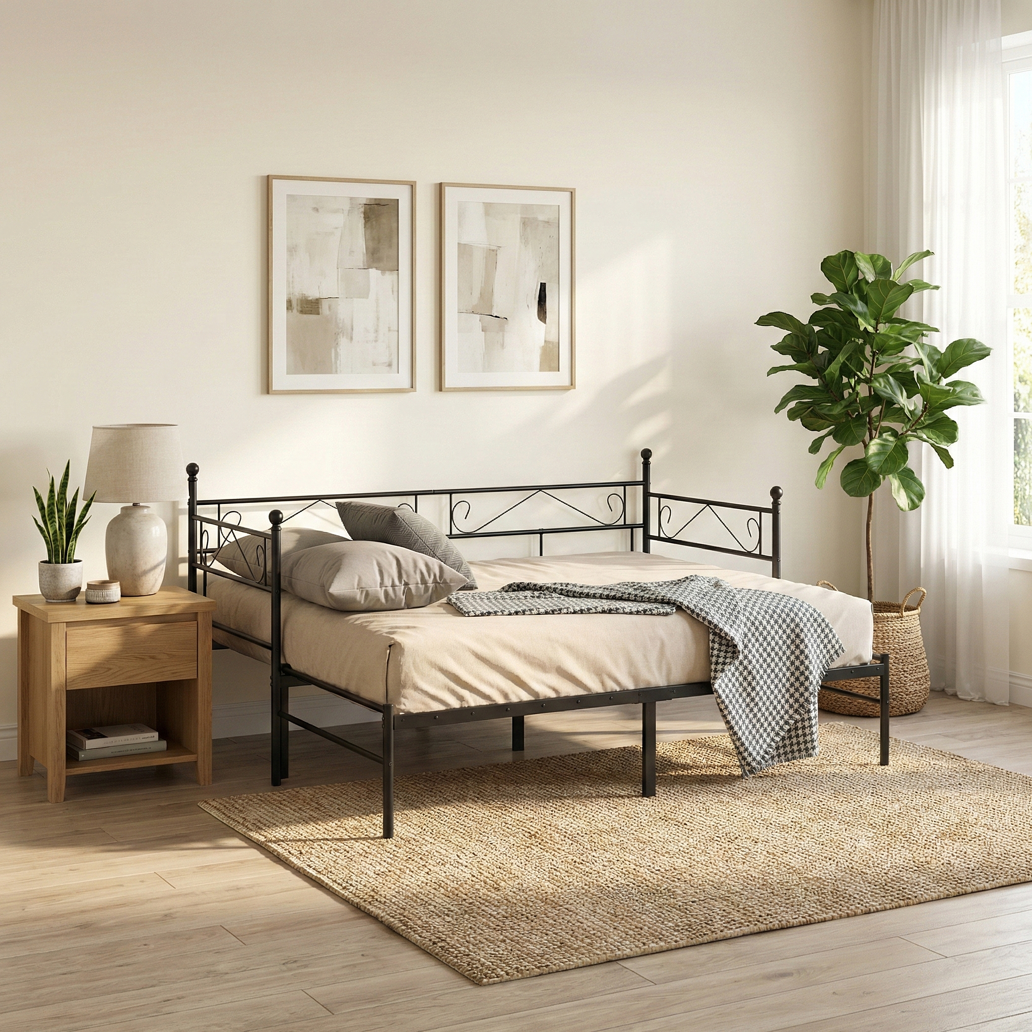 - Lit de jour élégant avec cadre métallique robuste en noir