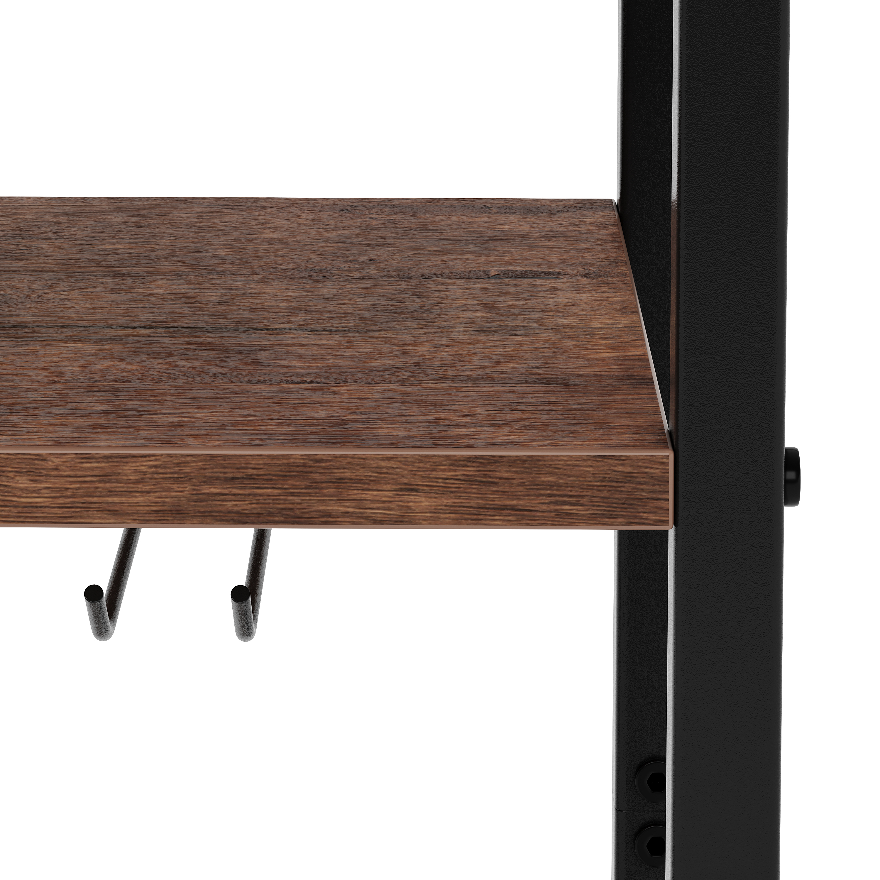 - Jeu harmonieux entre le métal noir et l'aspect bois