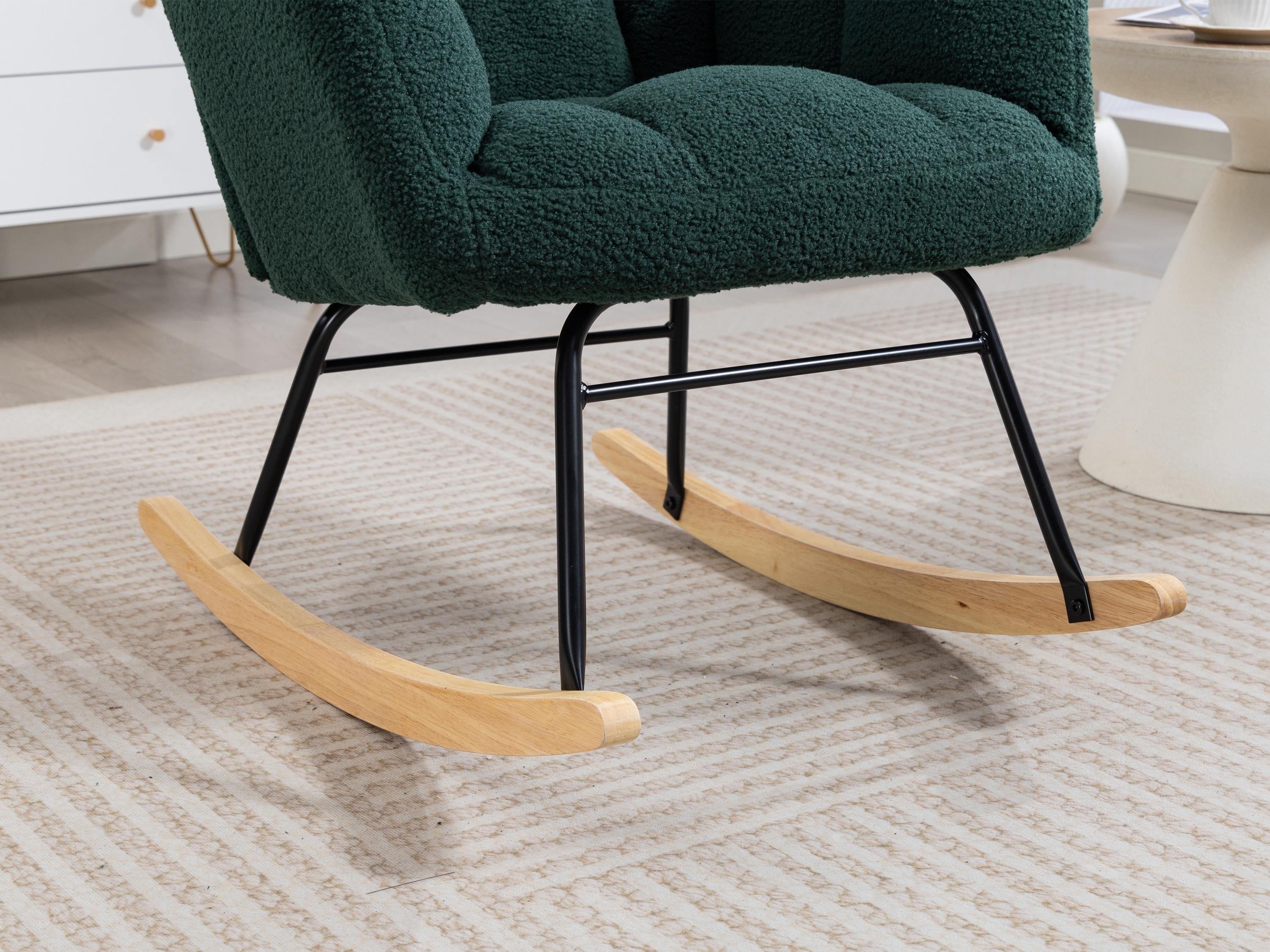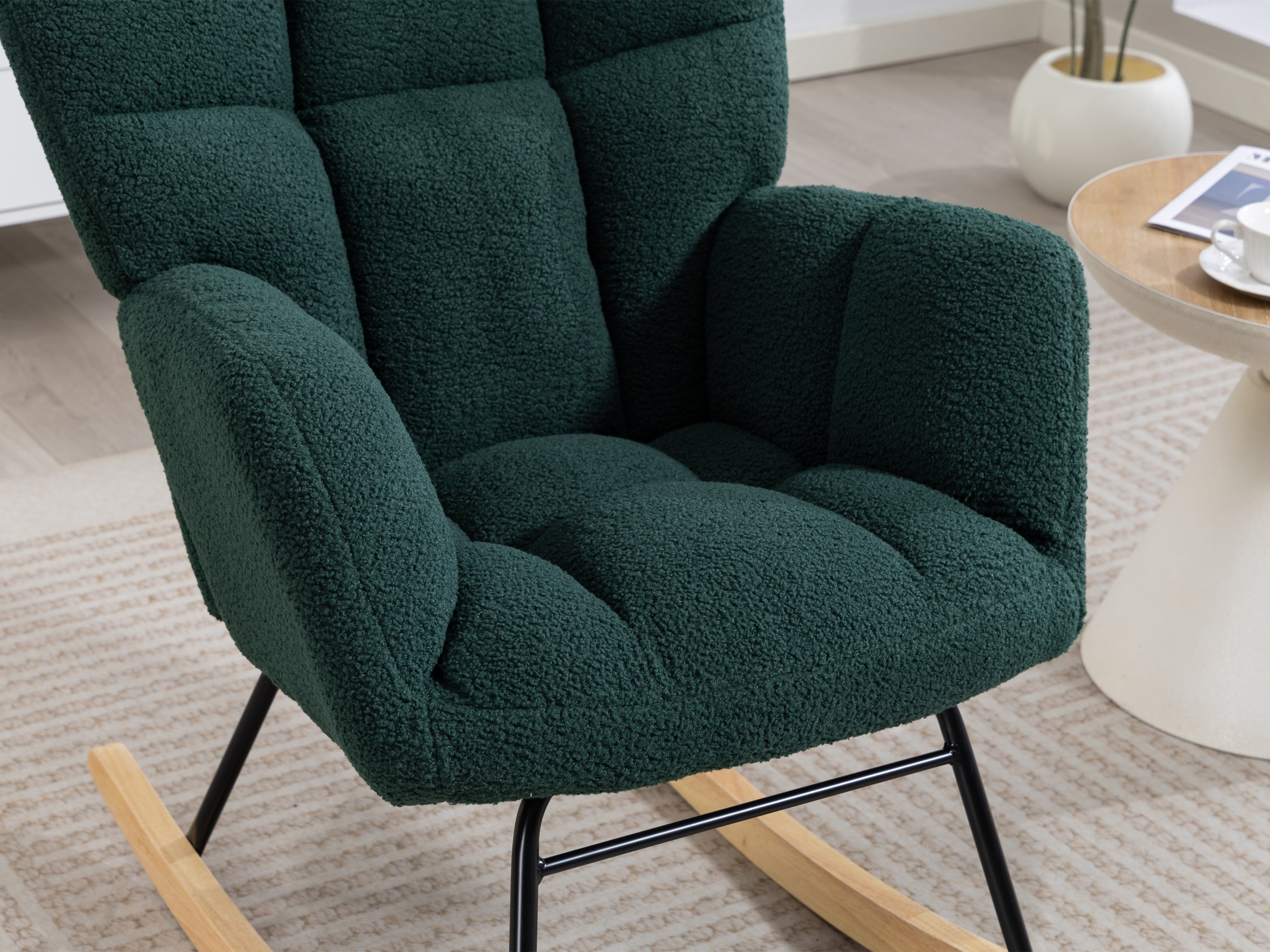Fauteuil à bascule avec tissu Teddy doux en vert
