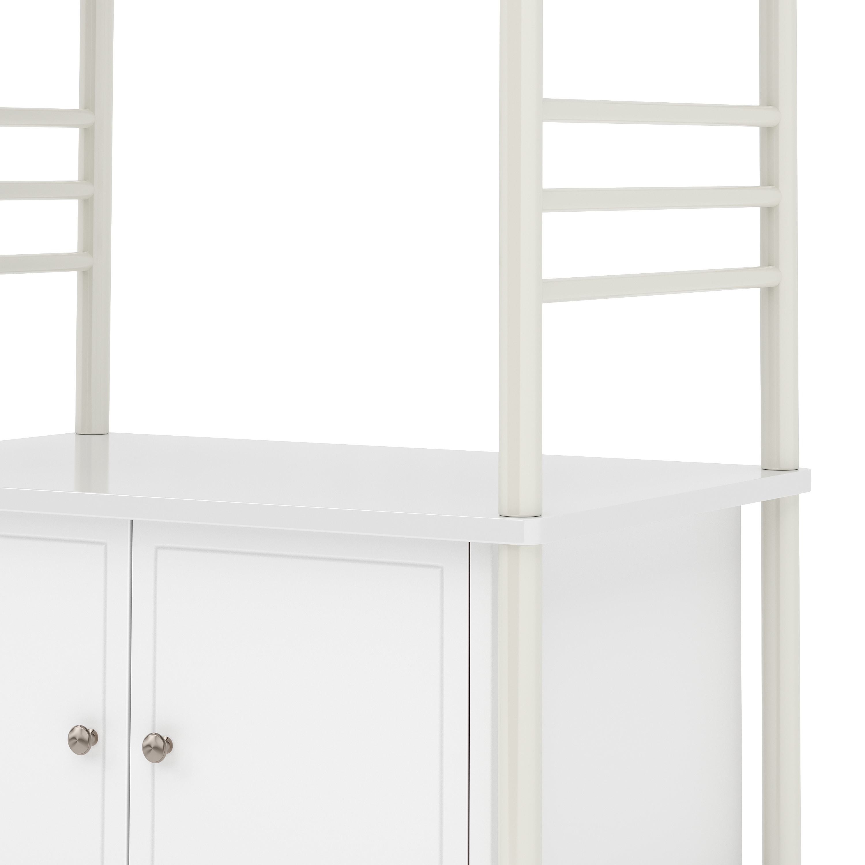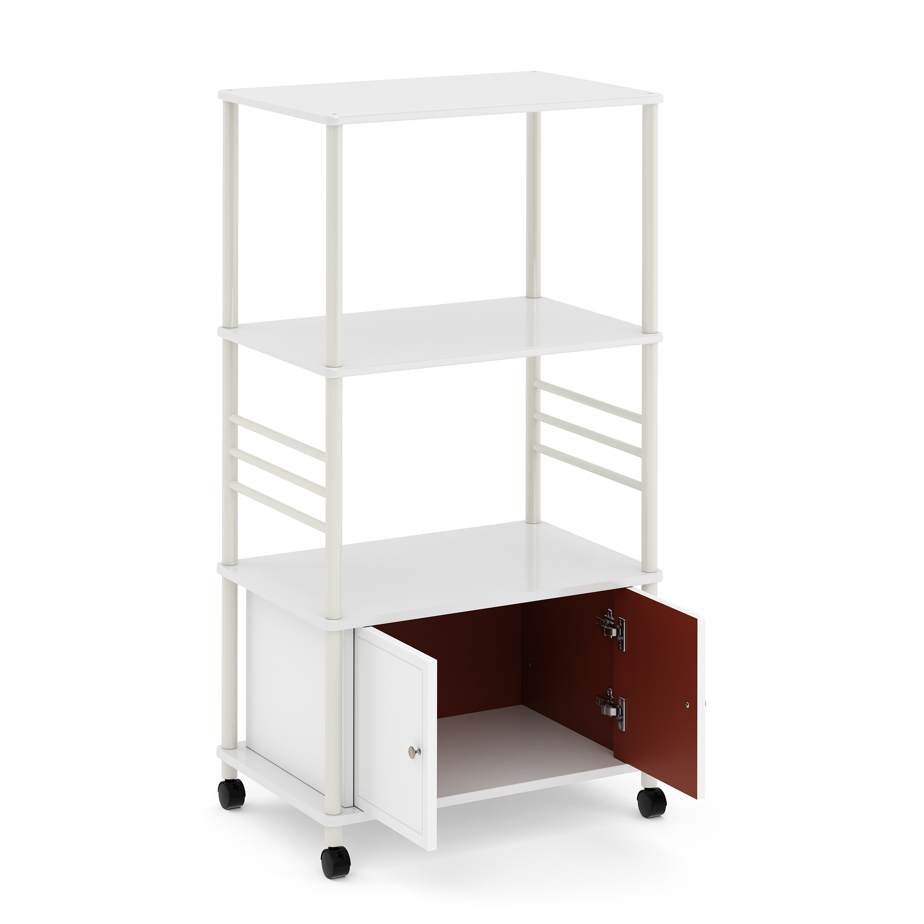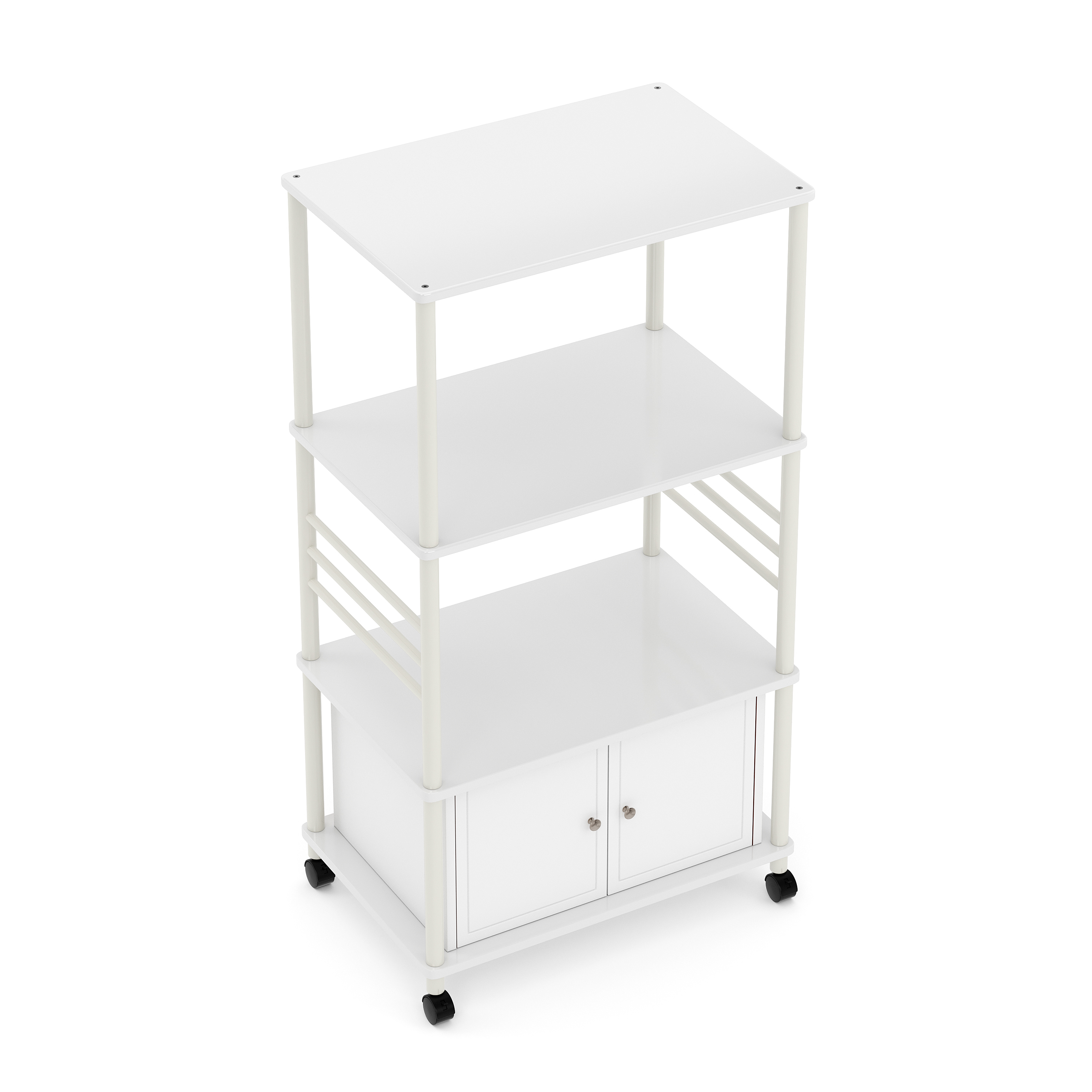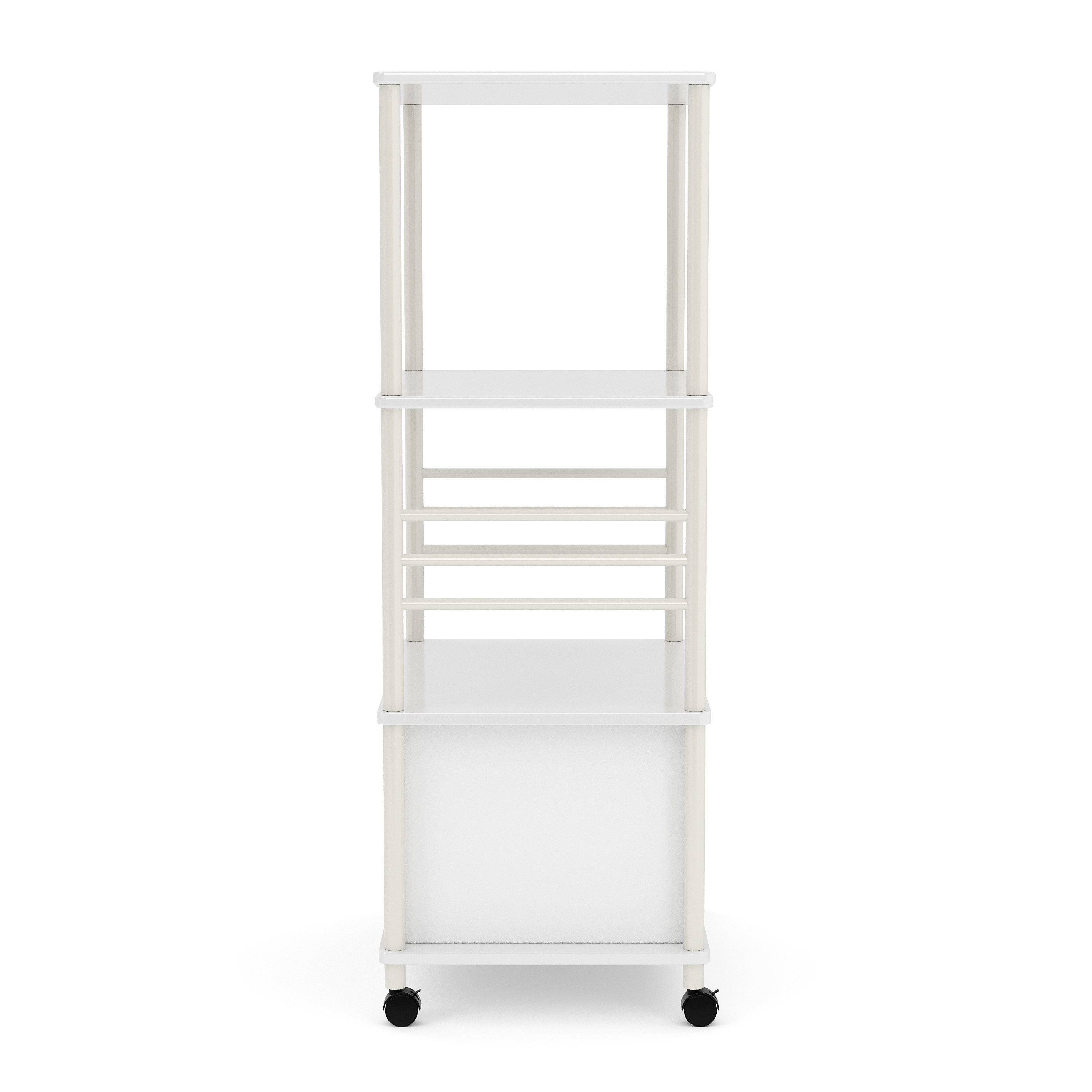 Cette étagère de cuisine pratique en blanc t'offre un espace de rangement polyvalent et une mobilité facile grâce à ses quatre roulettes avec freins. Les trois étagères et l'armoire intégrée permettent de ranger tes ustensiles de cuisine de manière ordonnée. Les barres latérales sont idéales pour suspendre des torchons ou d'autres ustensiles de cuisine. Procure-toi dès maintenant cette étagère de cuisine fonctionnelle pour plus d'ordre dans ta cuisine !