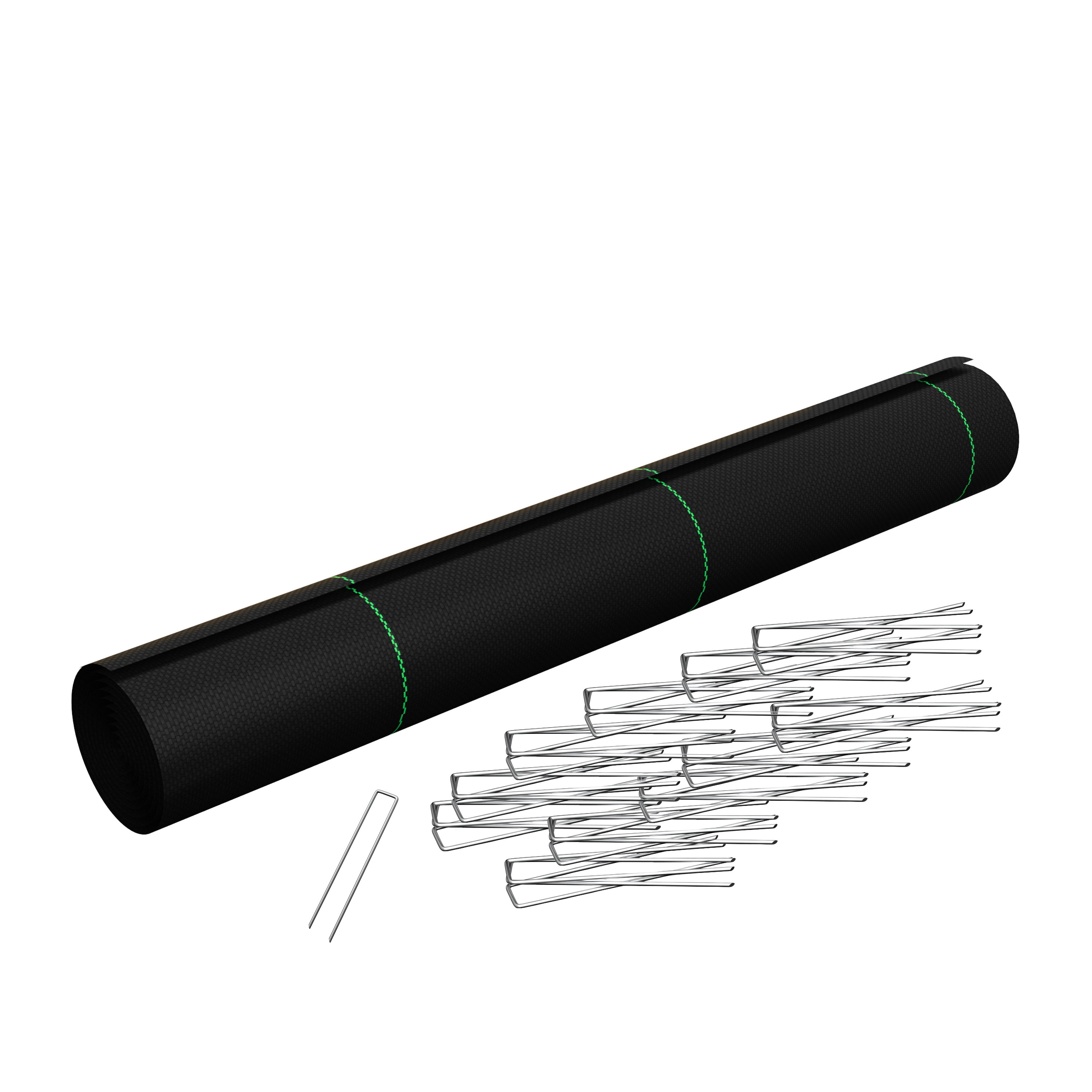 - Le kit comprend 100 ancrages au sol et 2 x 50 mètres de non-tissé contre les mauvaises herbes