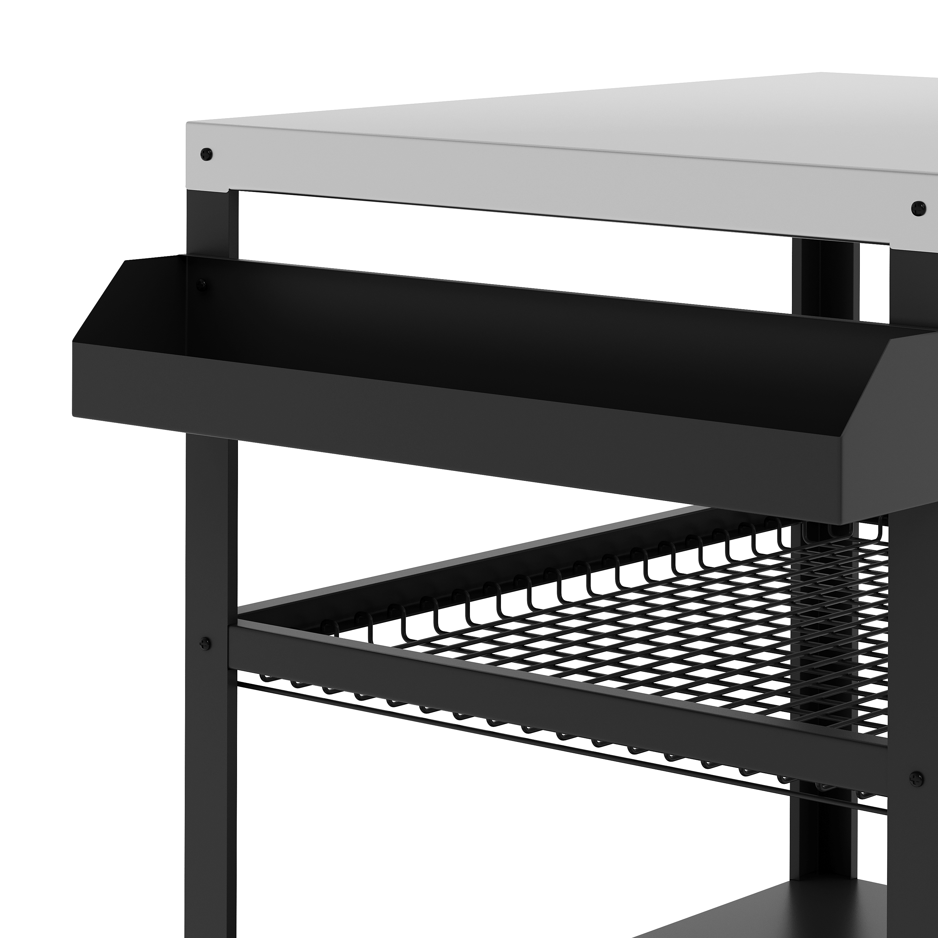 - Panier grillagé pratique et surface de rangement pour les ustensiles de barbecue
