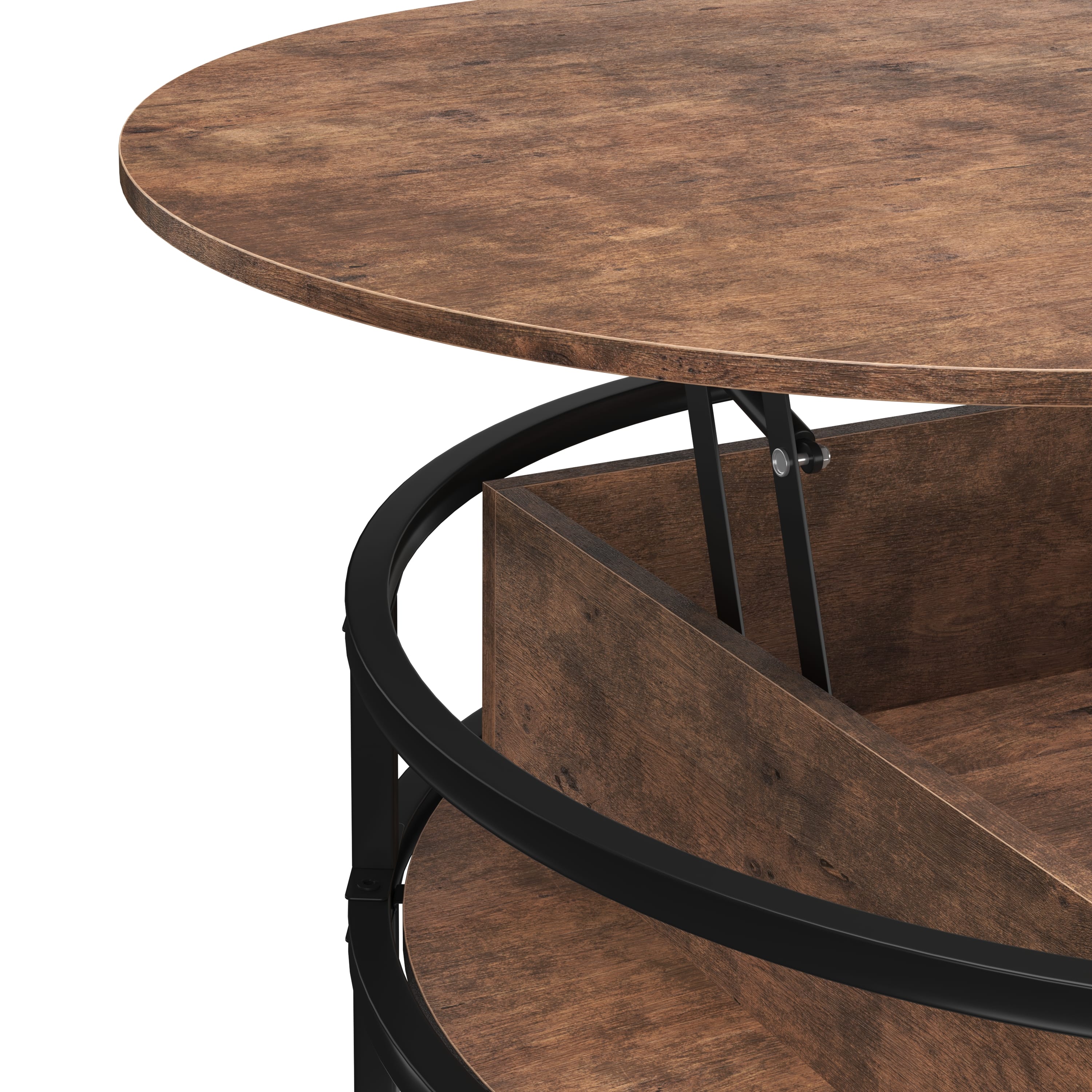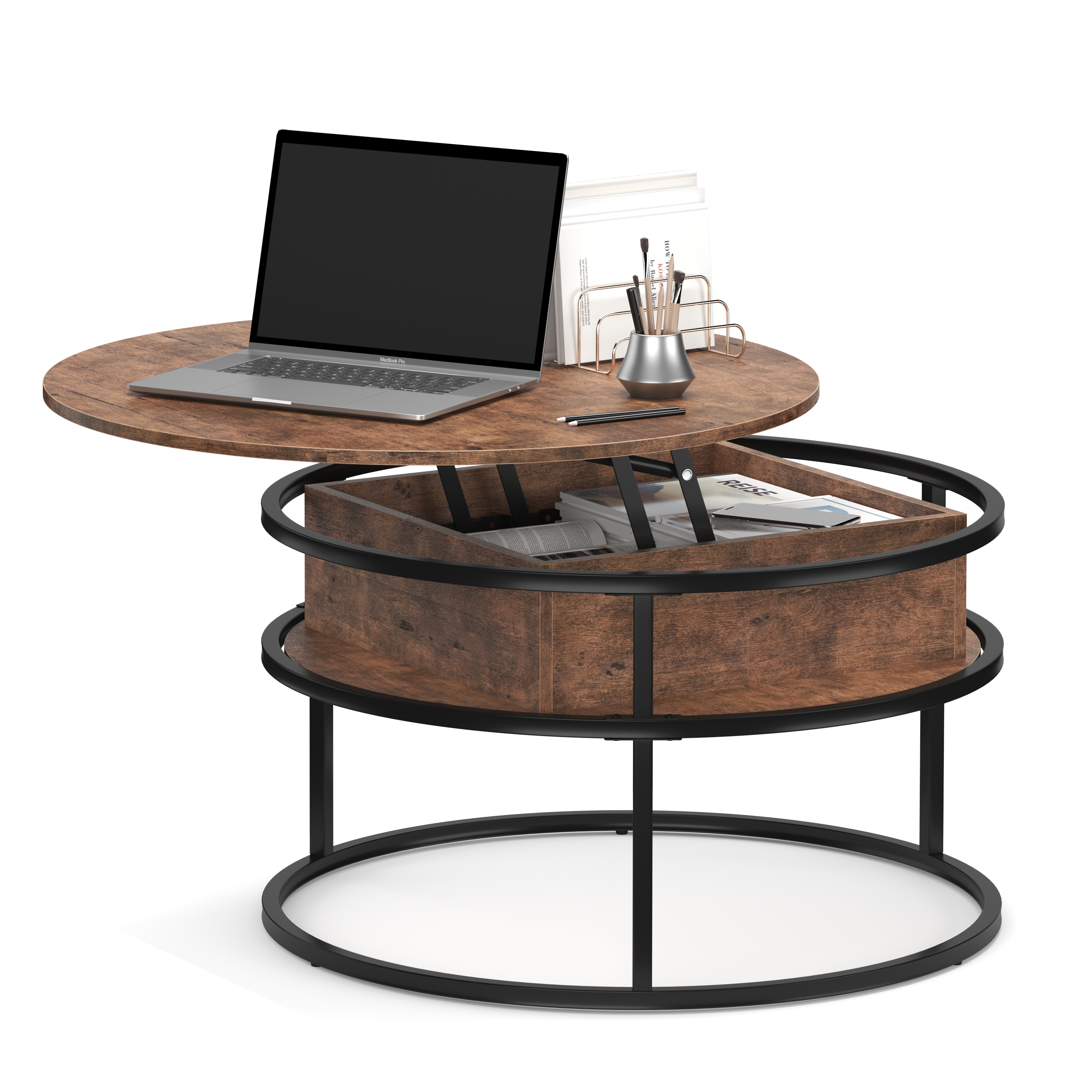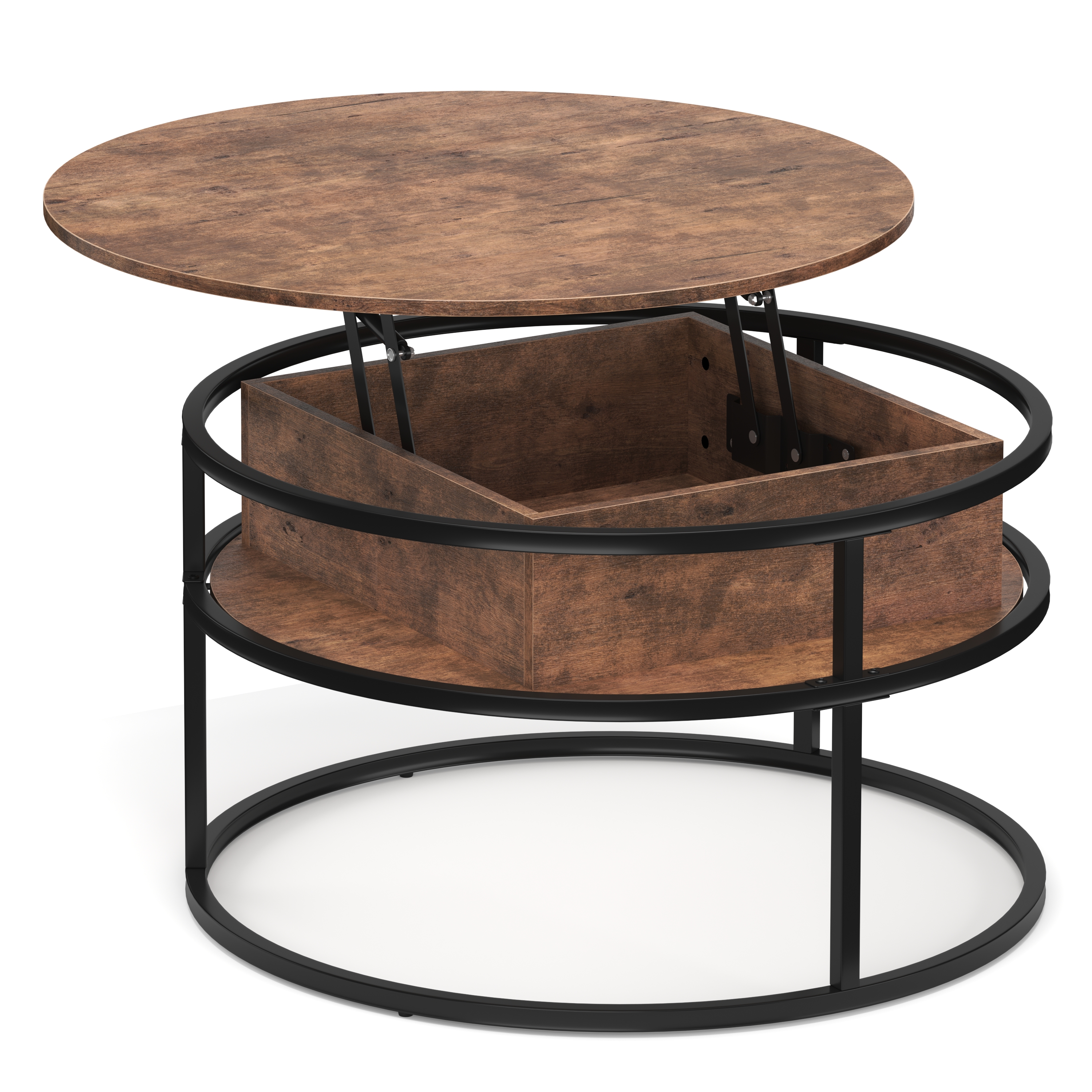 Cette table basse avec fonction lift-top innovante t'offre un confort maximal. Qu'il s'agisse d'un support pour des snacks et des boissons ou d'une table d'ordinateur portable pratique, le plateau de table rond s'adapte à tes besoins. Le compartiment de rangement caché permet de maintenir l'ordre, tandis que la construction métallique avec un aspect bois complète parfaitement le look industriel en vogue. Complète ton intérieur avec cet accroche-regard stylé de la série BONITA !