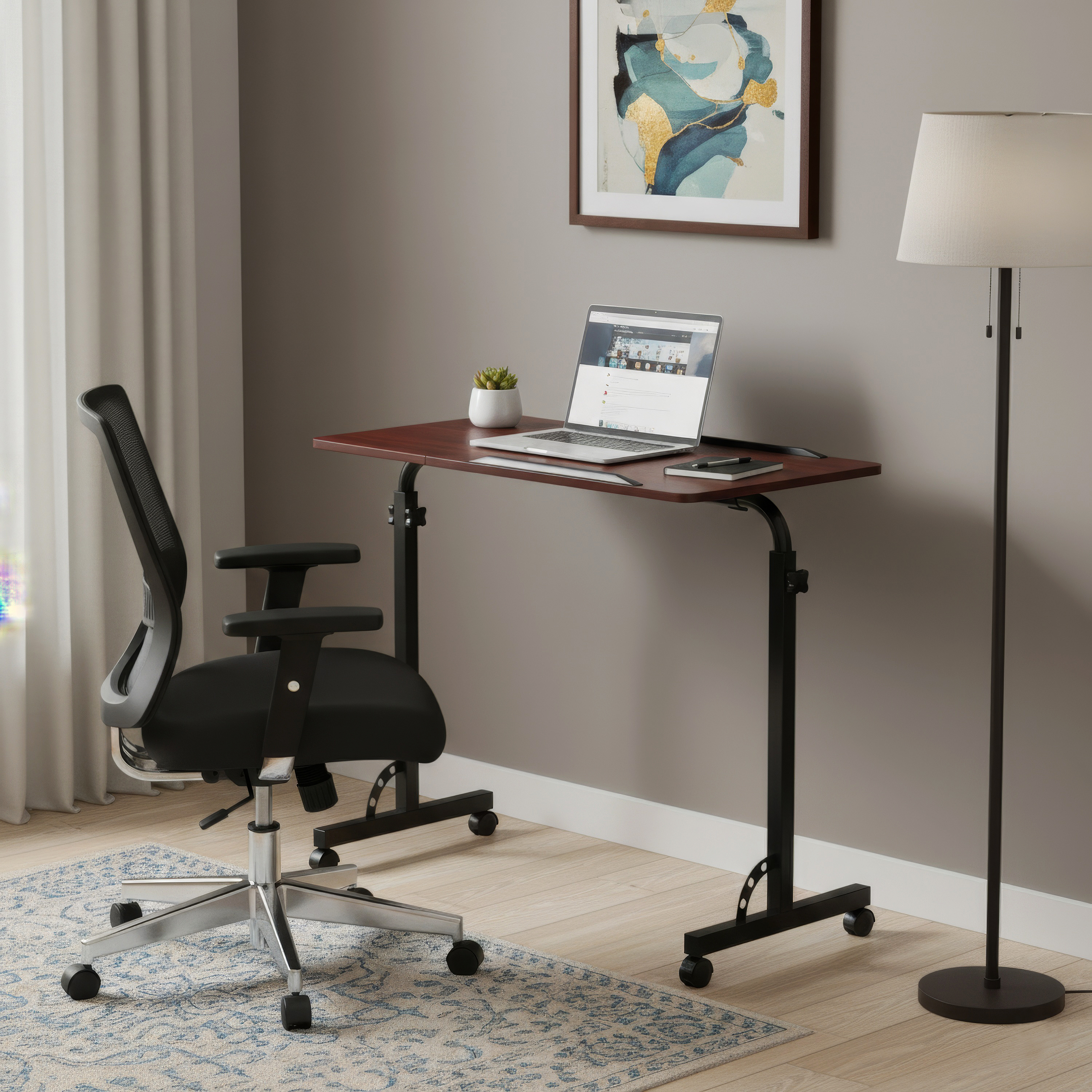 Bureau avec plateau inclinable sur roulettes