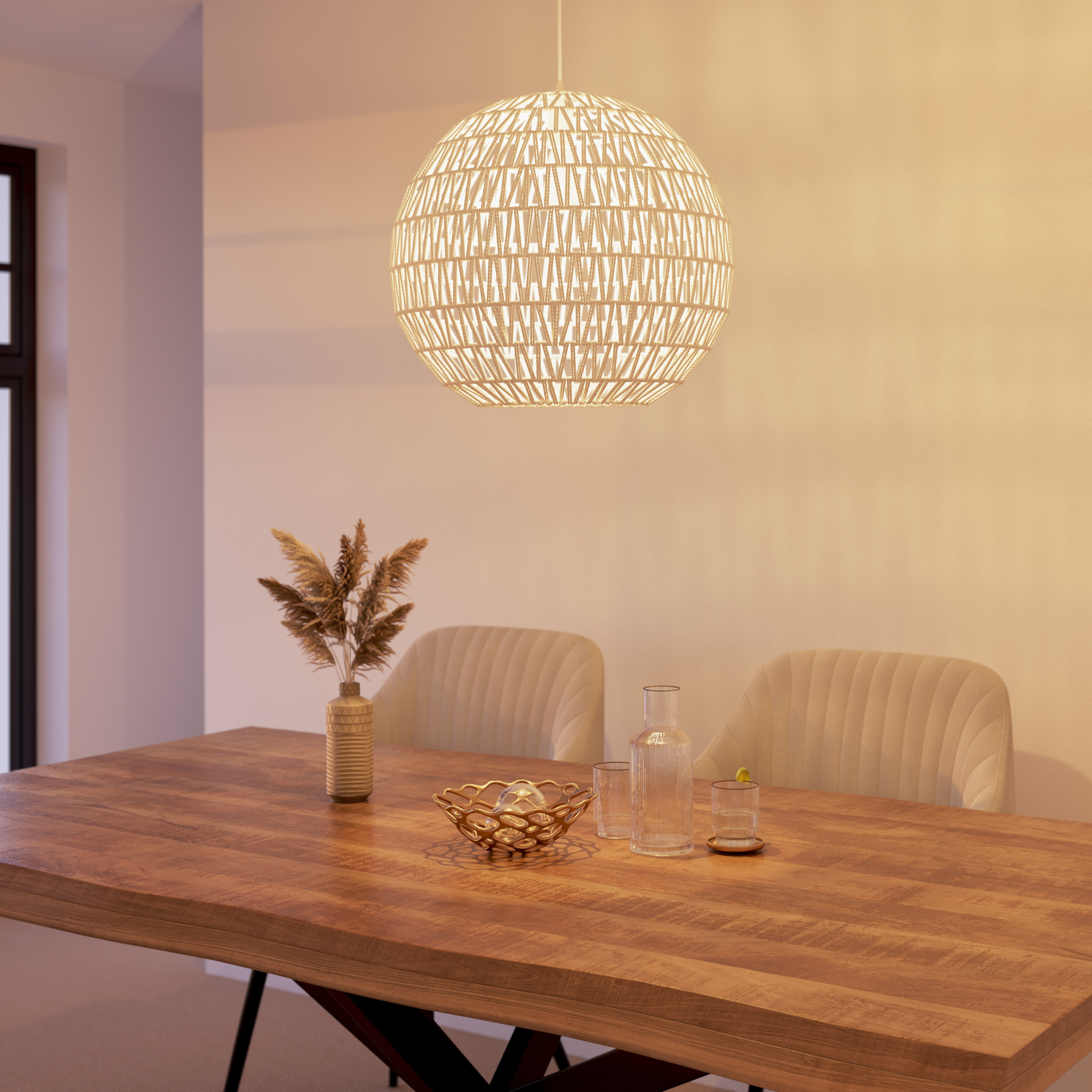 Verleihe deinem Zuhause ein natürliches und stilvolles Ambiente mit dieser eleganten Hängelampe SPECTRA! Das moderne, skandinavische Design aus feinem Schnurgeflecht setzt beeindruckende Akzente und sorgt für ein warmes, einladendes Licht. Ob über dem Esstisch, im Wohnzimmer oder im Schlafzimmer – diese Lampe bringt harmonische Eleganz in jeden Raum. Gönn dir diese besondere Lichtquelle und mach dein Zuhause noch gemütlicher!