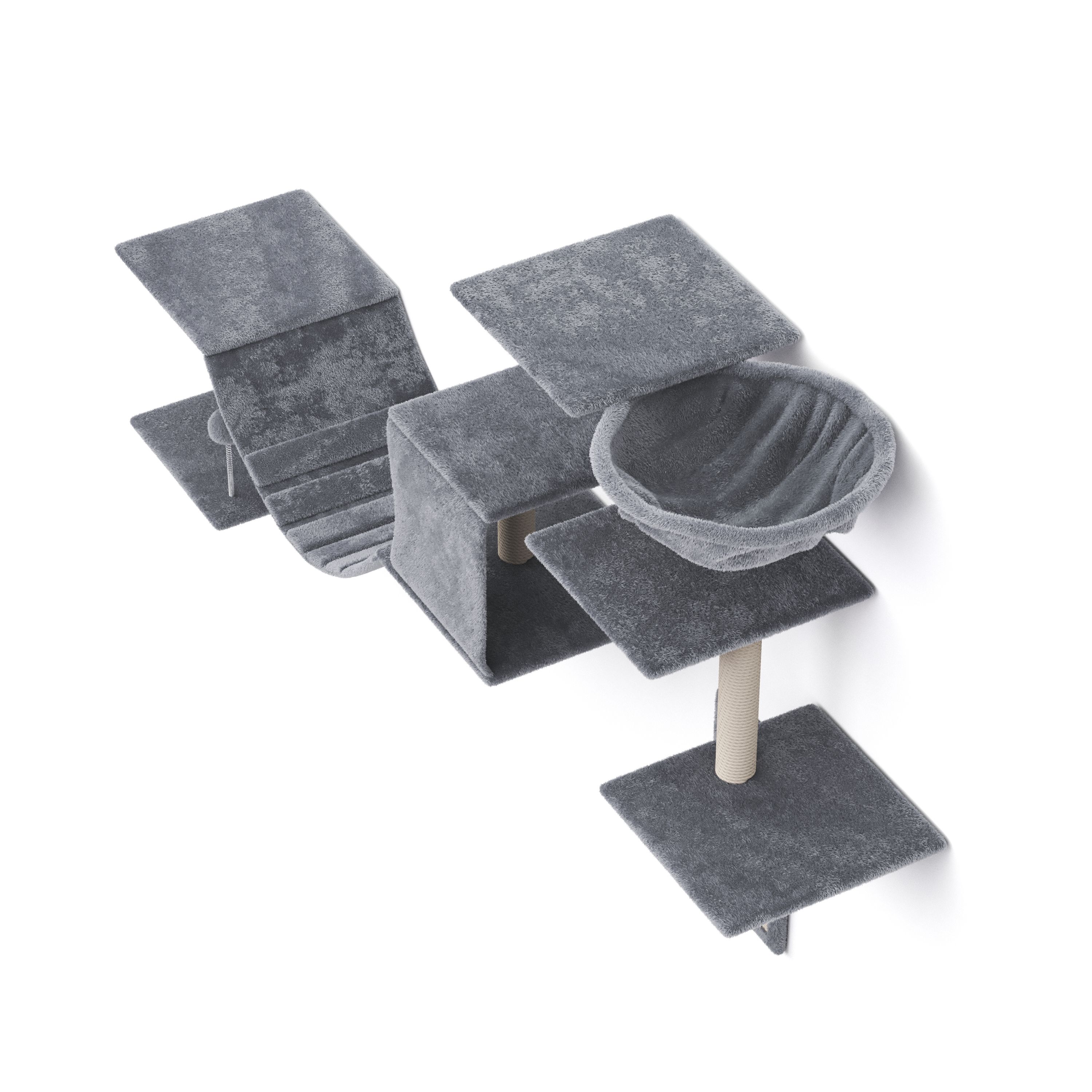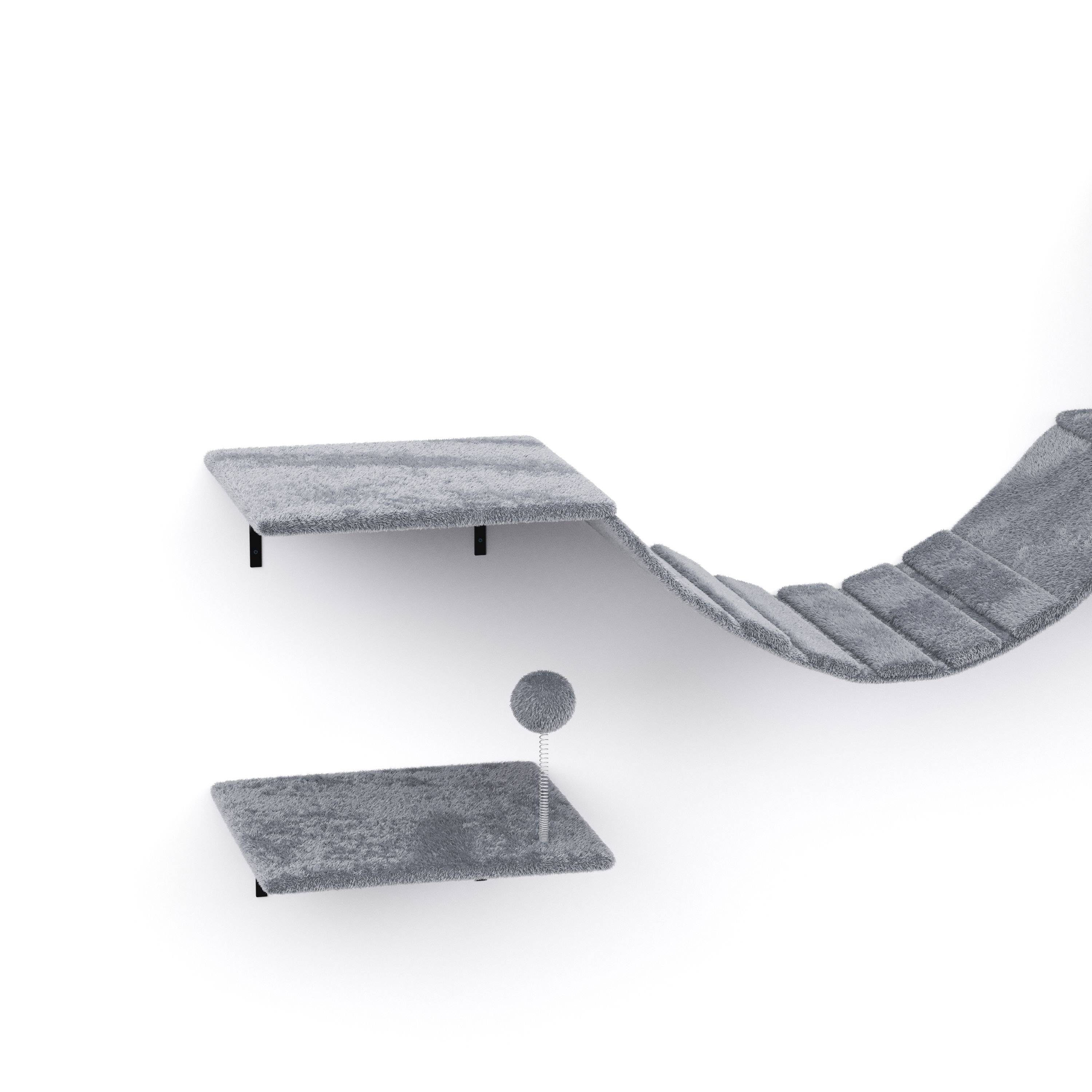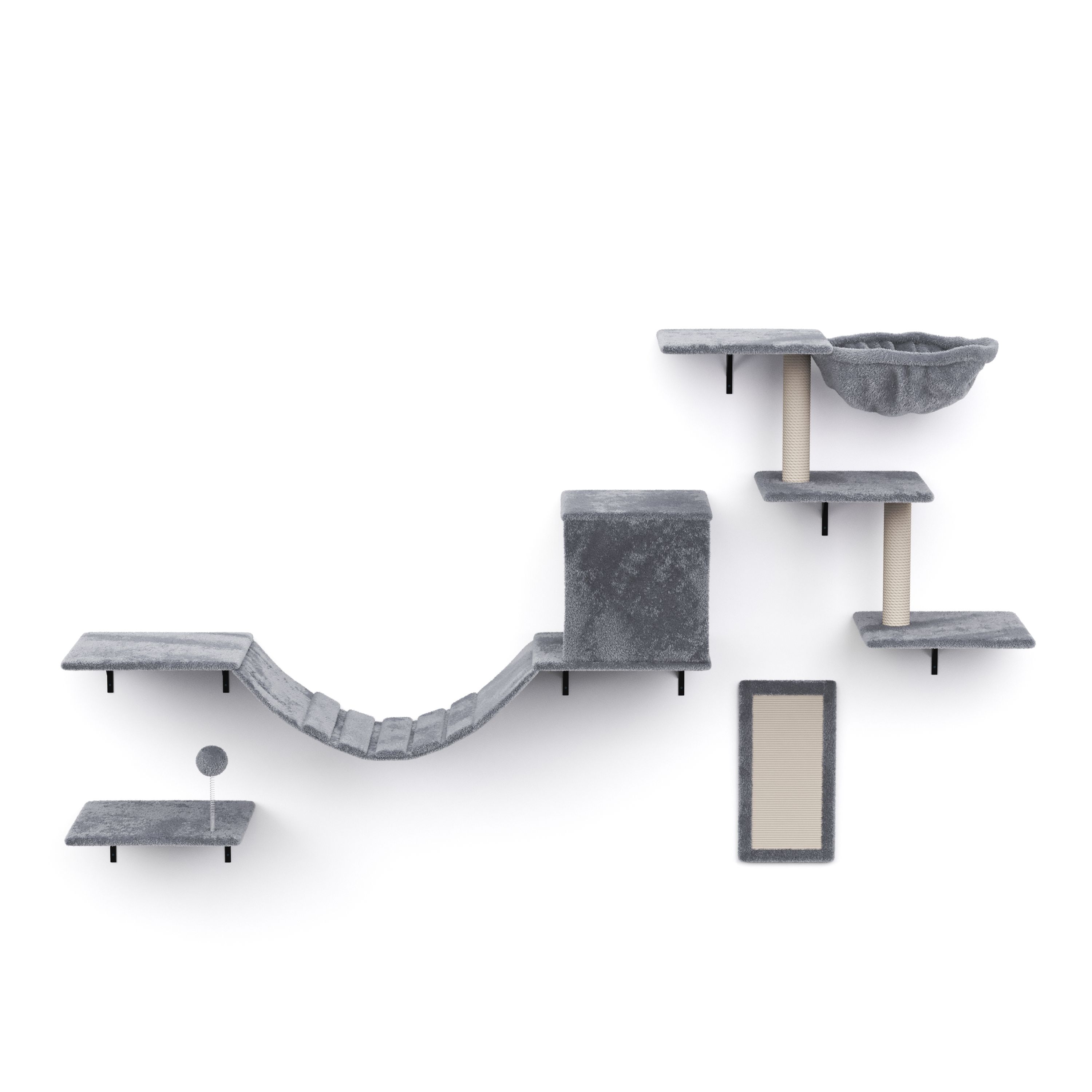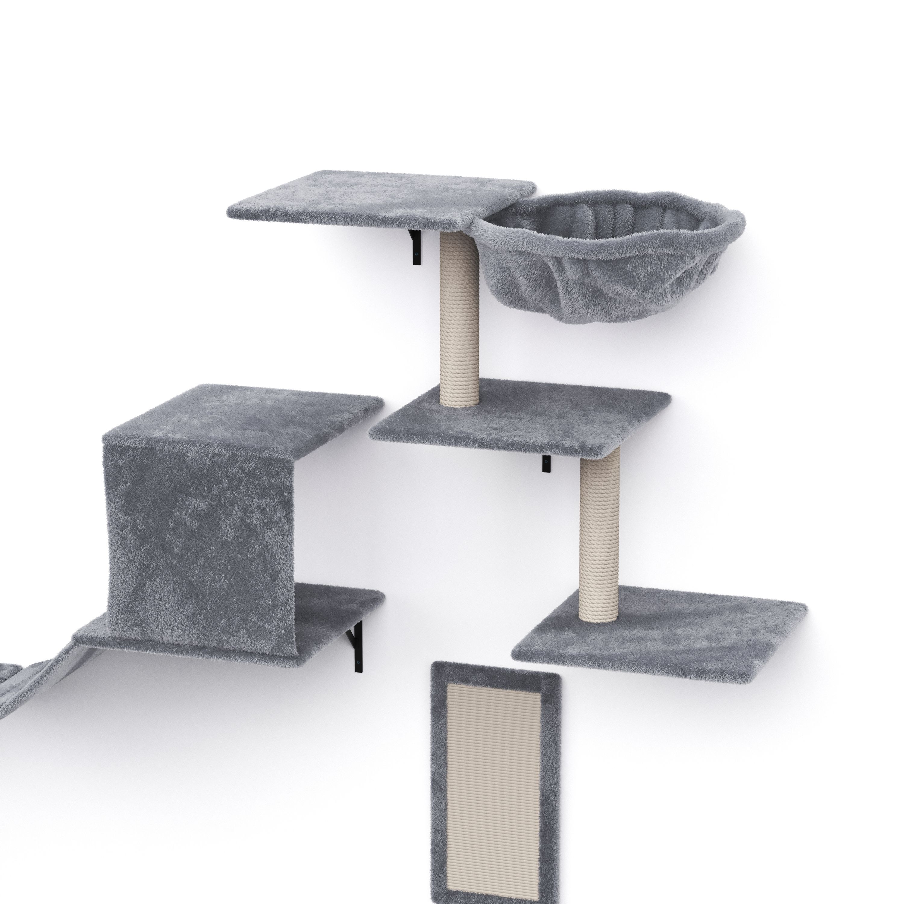 - Katzenmöbel-Set mit Liegemulde, Liegeplattformen, Wellenbrücke und Kratzmatte