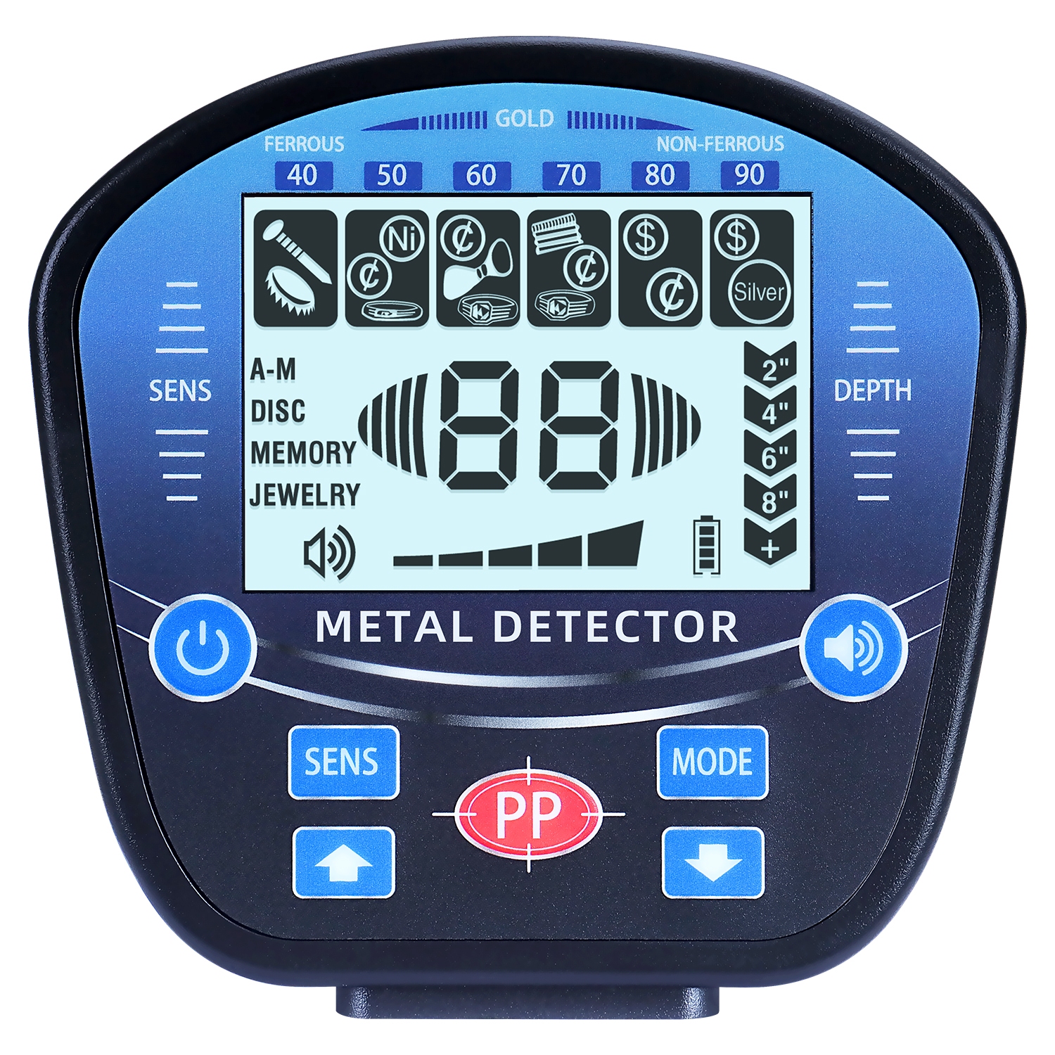 - Unterschiedliche Modi ermöglichen das Suchen nach spezifischen Metallen
