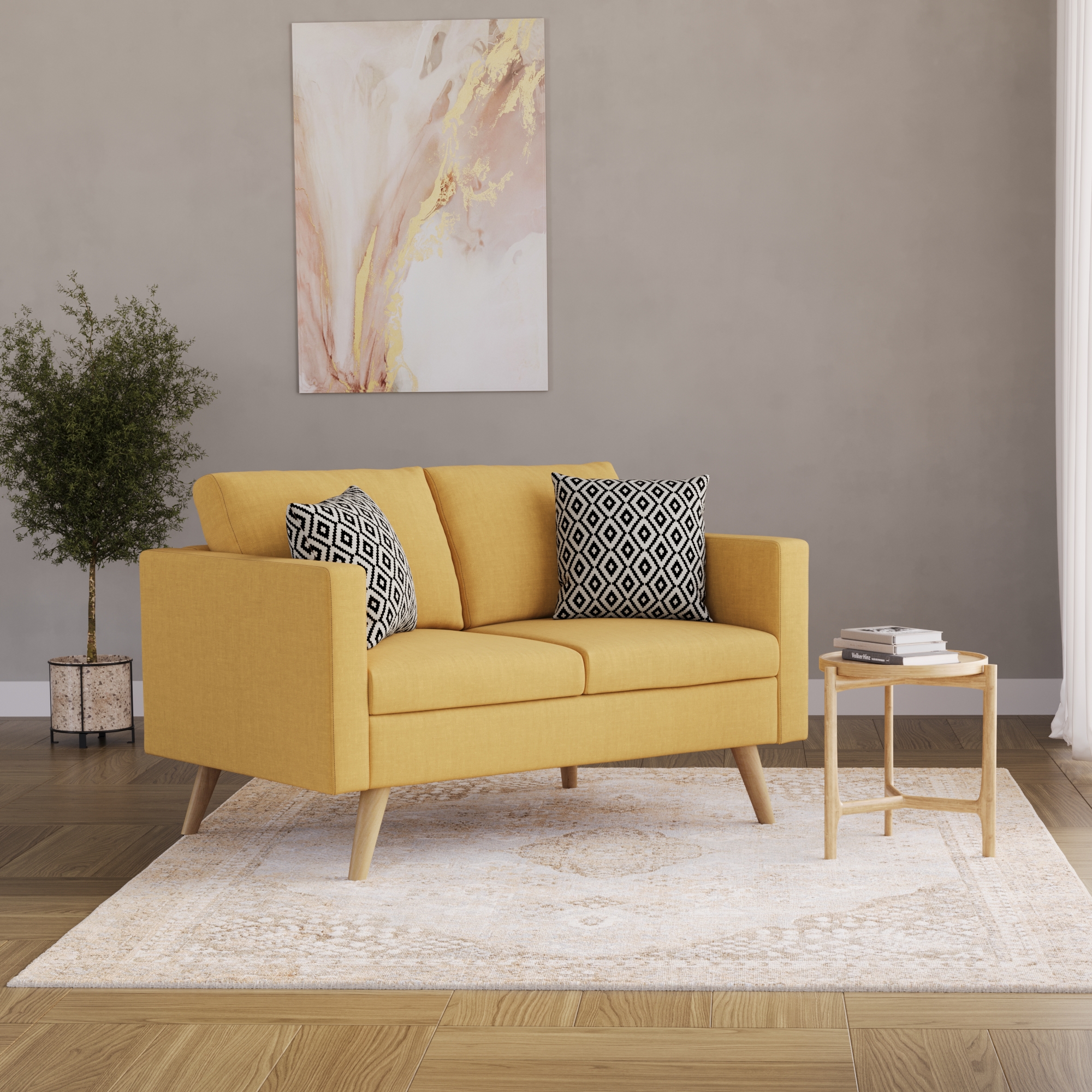 Zu zweit fernsehen oder einen anstrengenden Arbeitstag ausklingen lassen: Hast du dieses Stoffsofa erst einmal ausprobiert, wird es garantiert zu deinem neuen Ort der Entspannung. Du kannst dich sorglos zurücklehnen. Denn der robuste Rahmen sorgt sowohl beim Sitzen als auch beim Füsse Hochheben für die nötige Stabilität. Das warme Gelb des Stoffbezugs wirkt beruhigend und entspannend. Das macht diese Couch ideal für deinen Wohnraum. Setze farbliche Akzente und gestalte dein Wohnzimmer gemütlich!