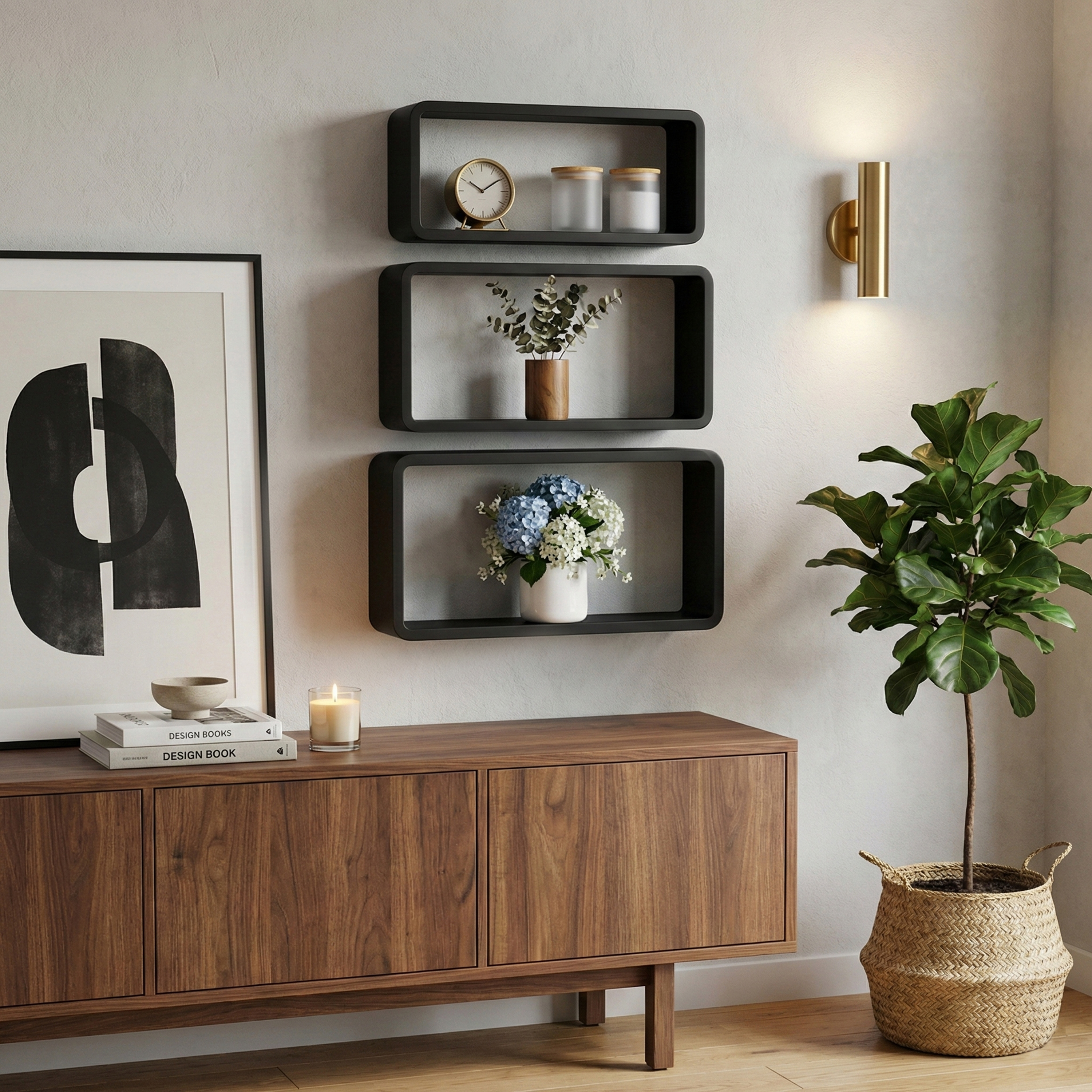 - Elegantes schwarzes Wandregal in rechteckiger Form